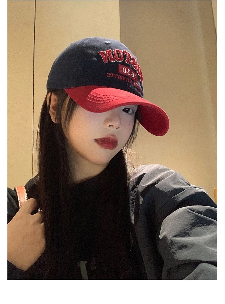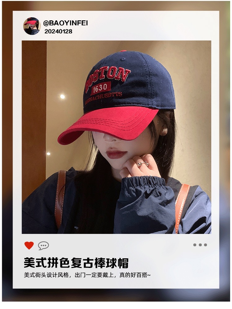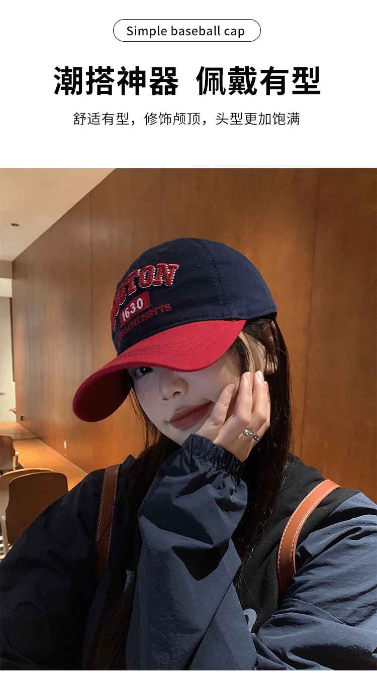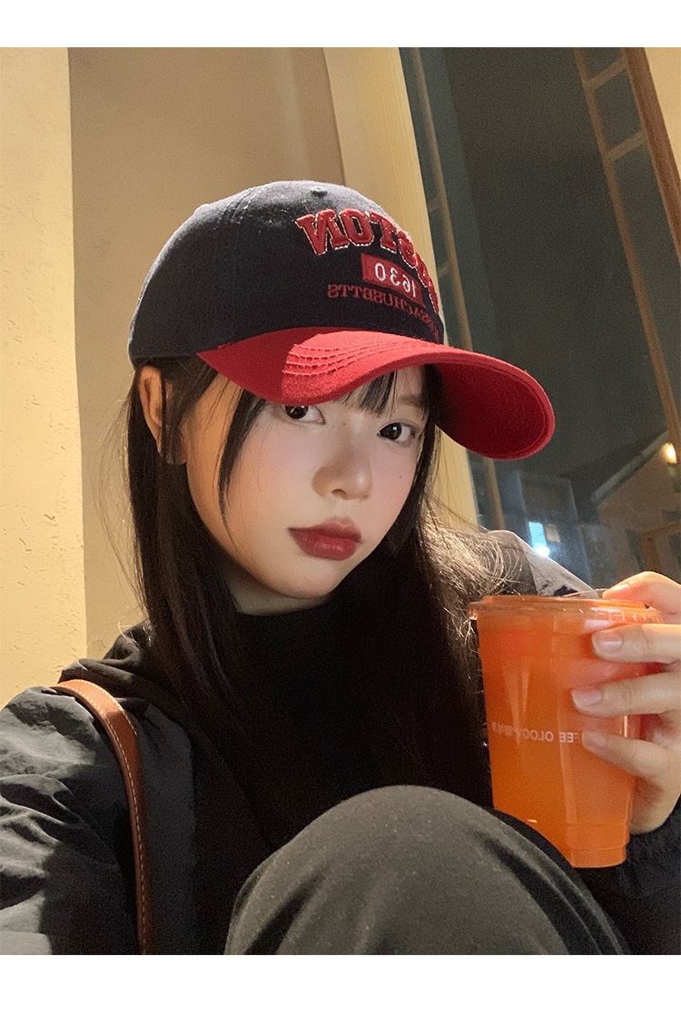 Colorblock 편지 야구 모자 여자 미국식 레트로 큰 머리 얼굴 작은 모자 와이드 브림 큰 얼굴 딥 탑 모자스토어 가기