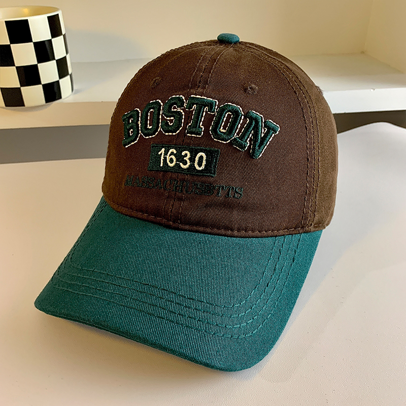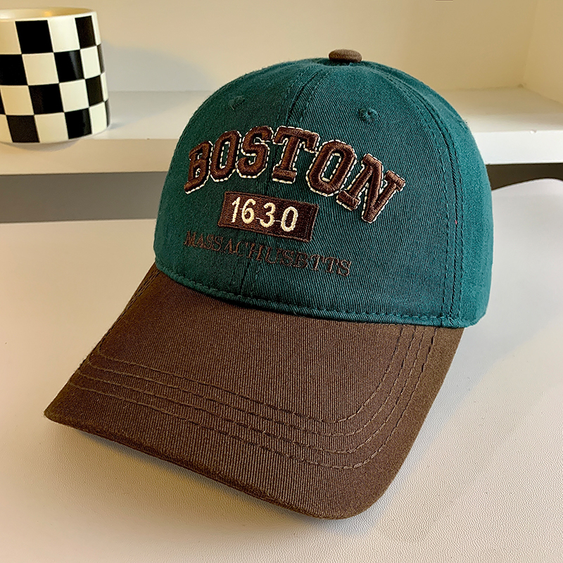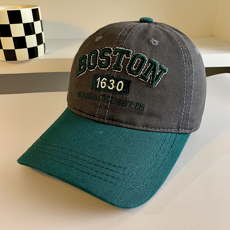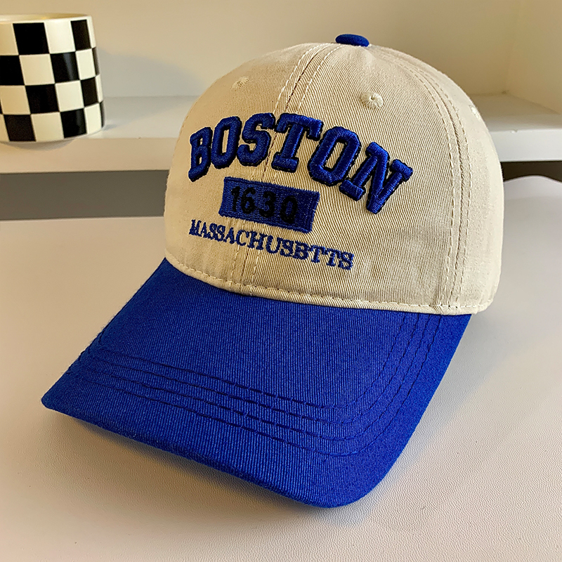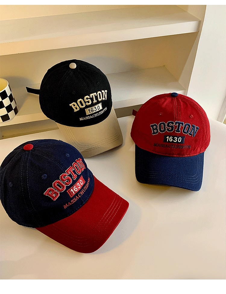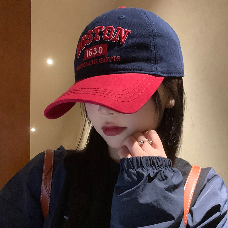 Colorblock 편지 야구 모자 여자 미국식 레트로 큰 머리 얼굴 작은 모자 와이드 브림 큰 얼굴 딥 탑 모자스토어 가기