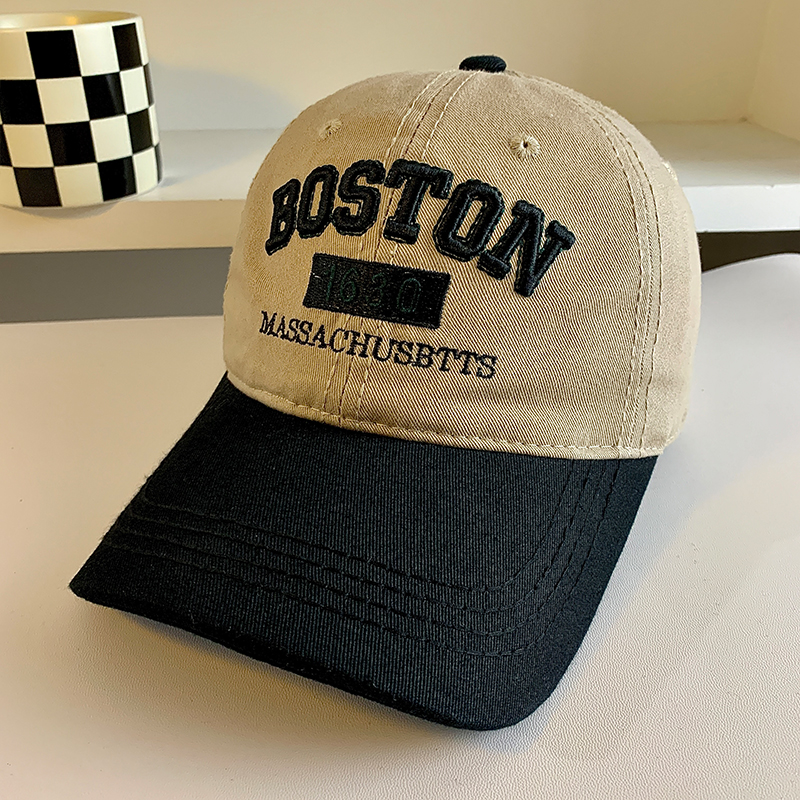 Colorblock 편지 야구 모자 여자 미국식 레트로 큰 머리 얼굴 작은 모자 와이드 브림 큰 얼굴 딥 탑 모자