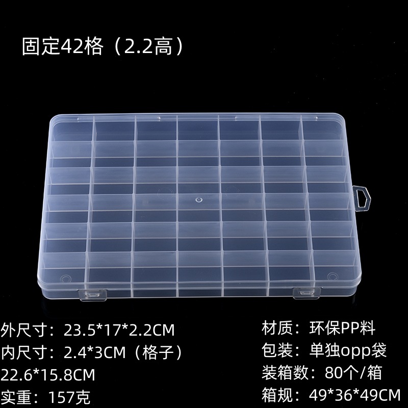 42 투명 pp 플라스틱 상자 고무 밴드 보석 저장 상자 부드러운 도자기 상자 쌀 구슬 상자 구슬 낚시 장비 하드웨어 상자