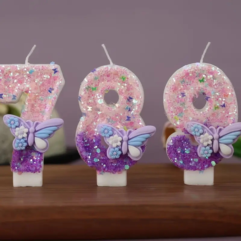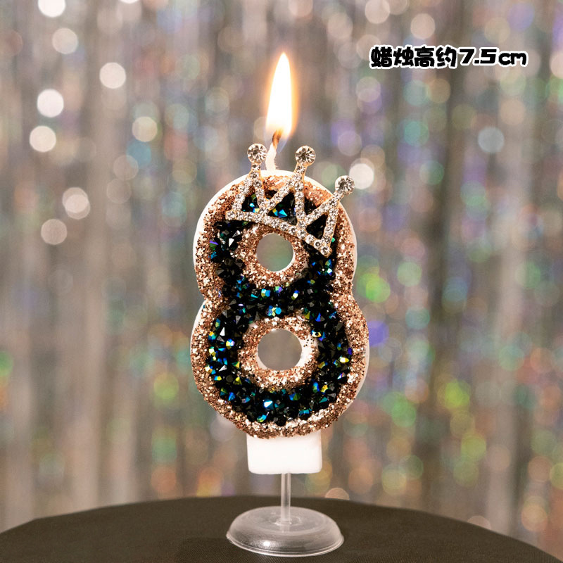 국경 간 블랙 골드 크라운 촛불 귀여운 핑크 그라데이션 보라색 활 디지털 어린이 생일 촛불 장식 케이크스토어 가기