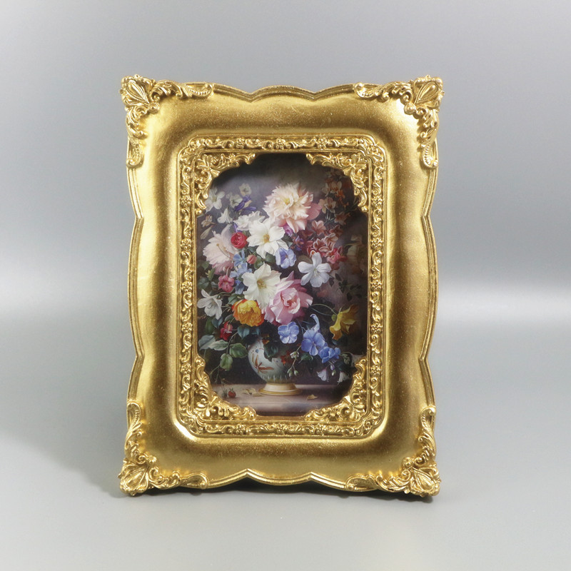 미국 수지 사진 프레임 침실 장식 그림 프레임 장식품 조각 된 황금 사진 프레임 유럽 복고풍 양각 테이블