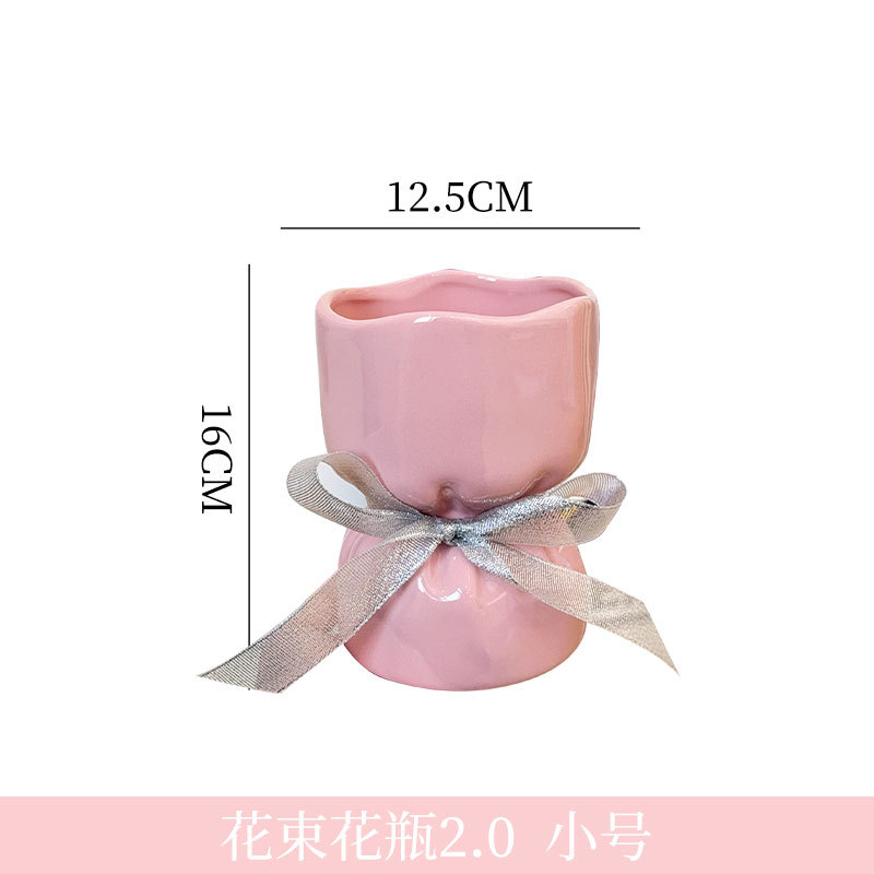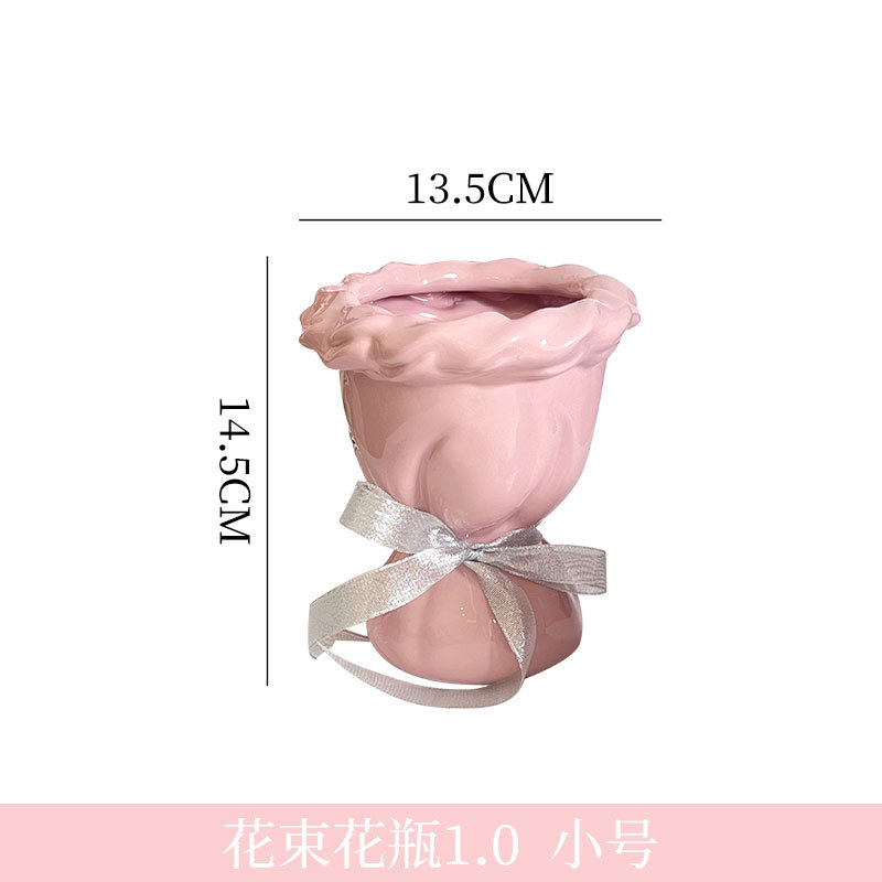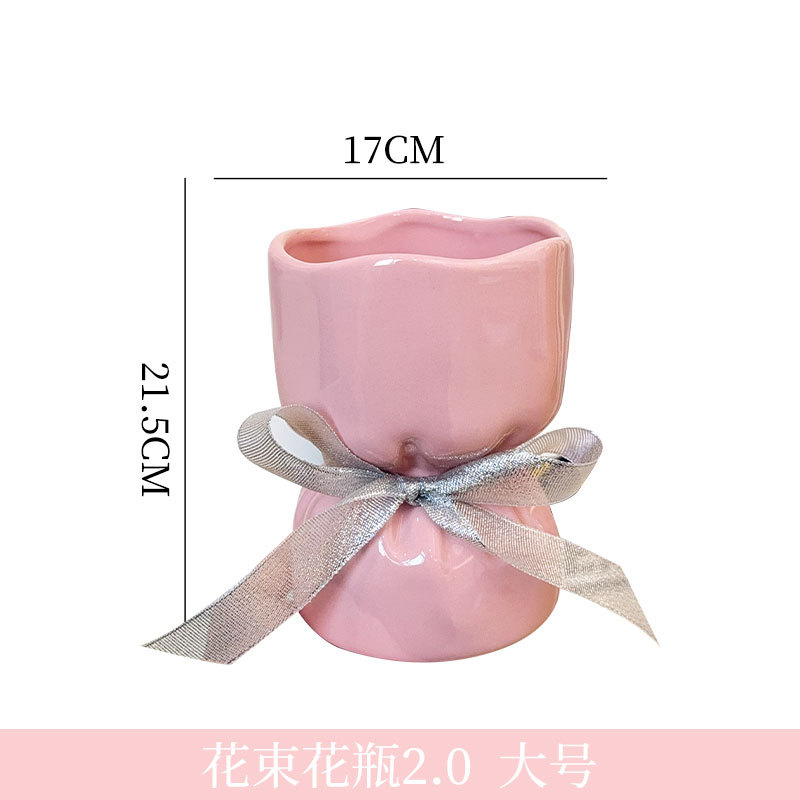 높은 가치의 핑크 세라믹 꽃병 창조적 인 꽃 모양 소녀 하이 엔드 센스 장식 장식품 거실 꽃 꽃병스토어 가기