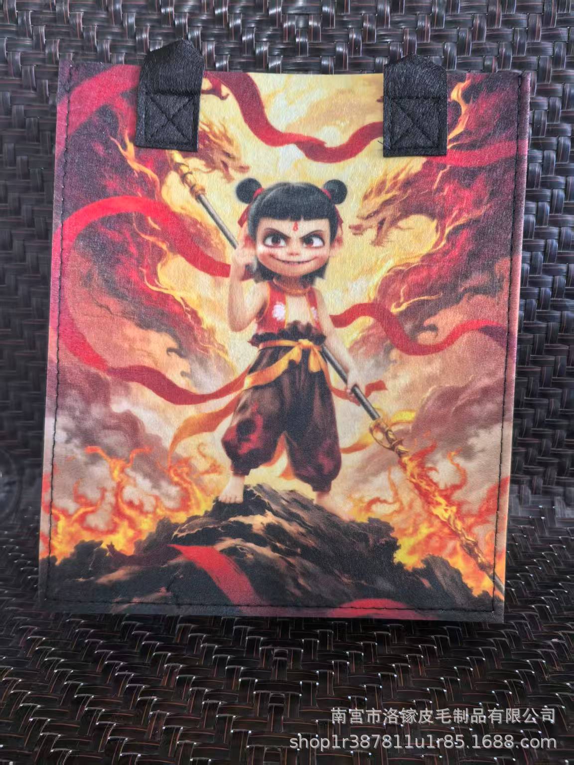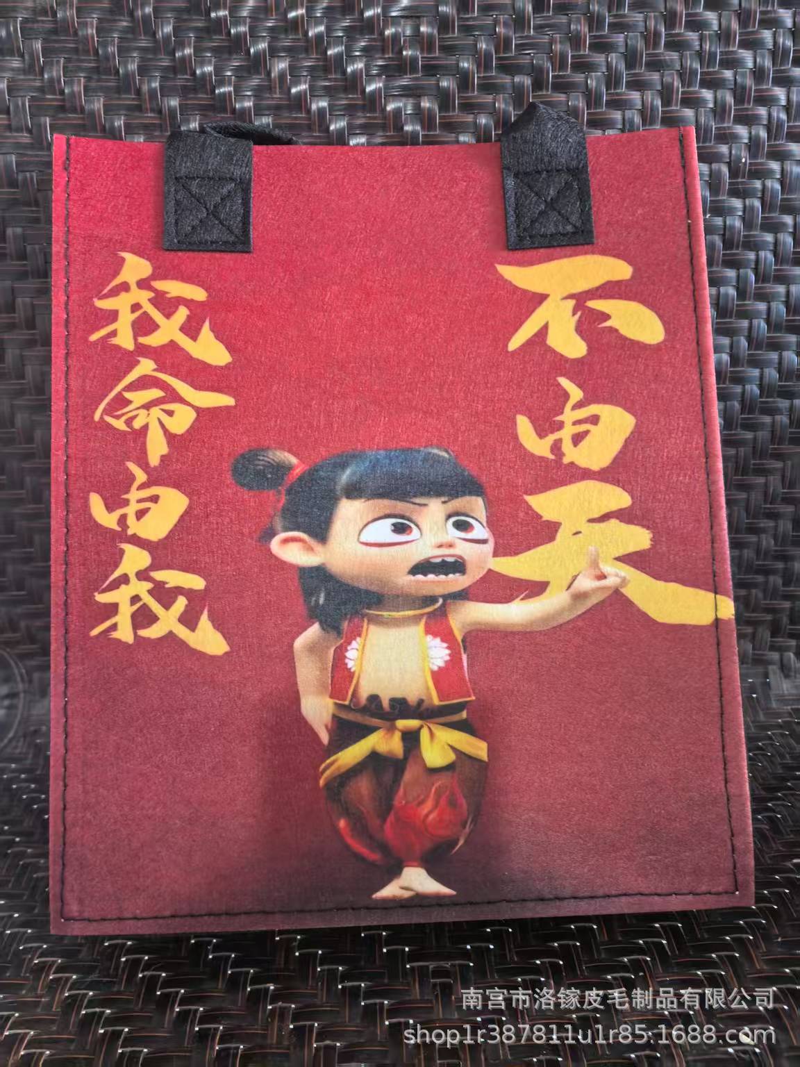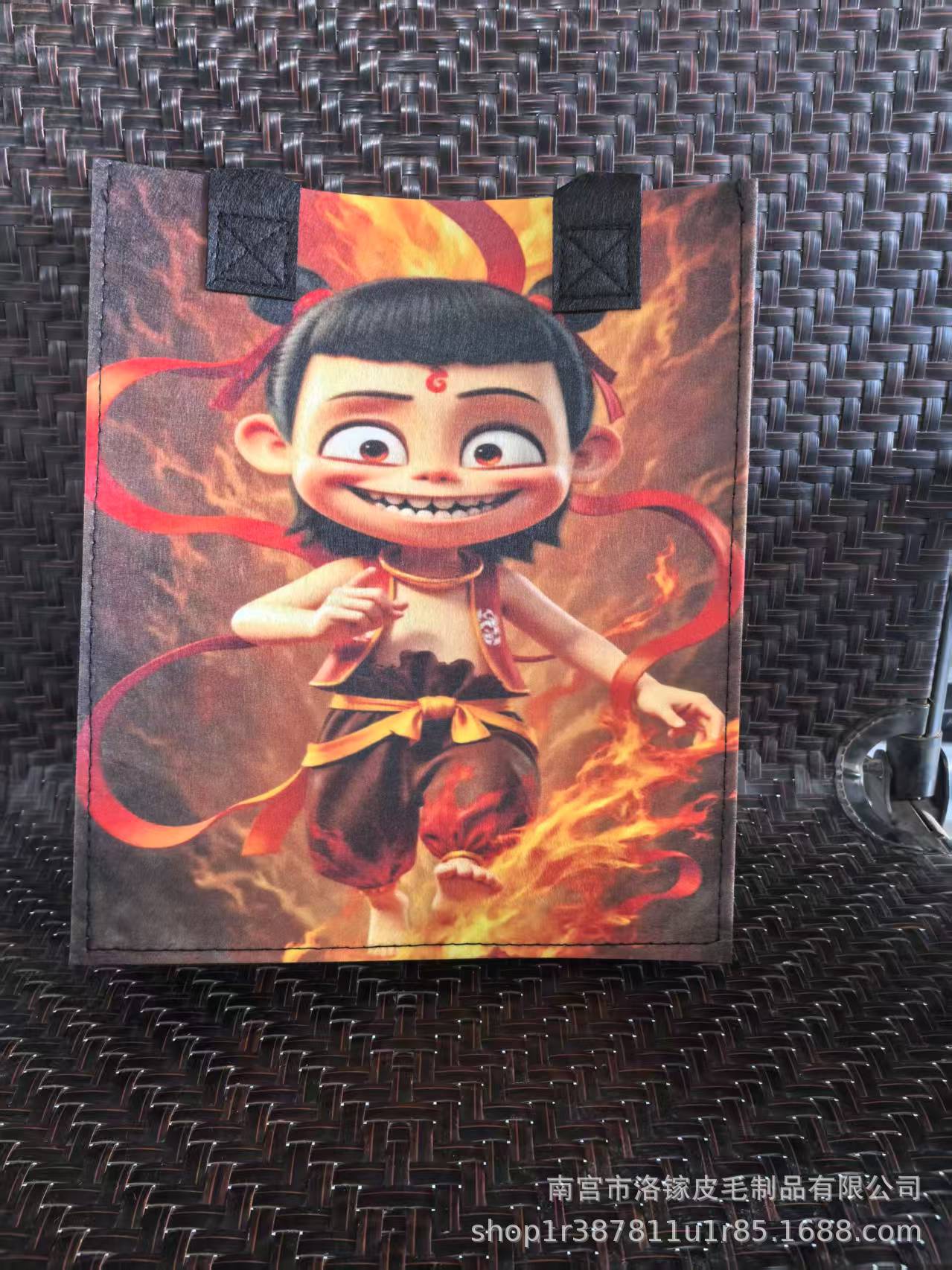 새로운 Nezha 펠트 백 선물 가방 핸드백 마법의 아이 바다 주변 펠트 백 핸드백 토트 백 보관