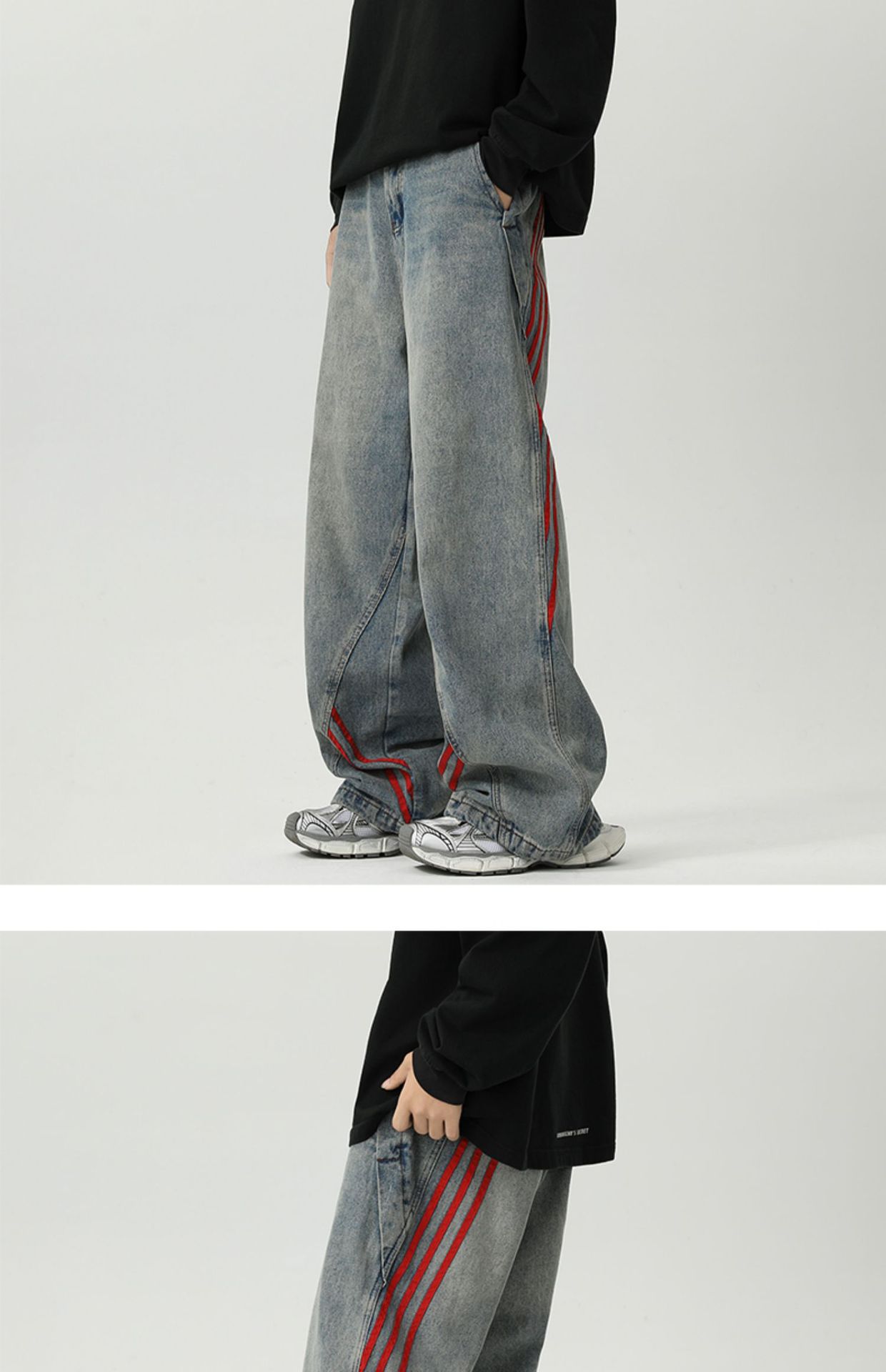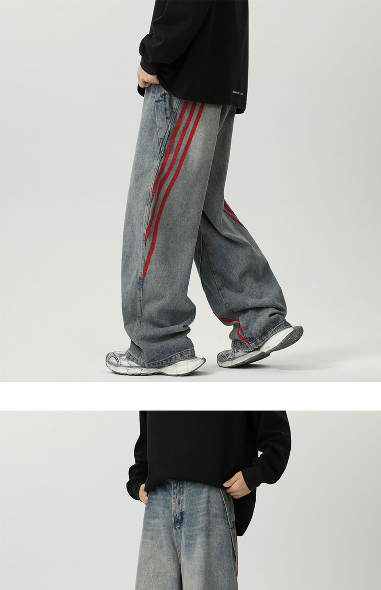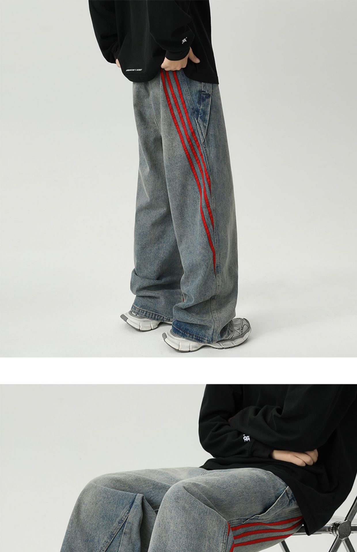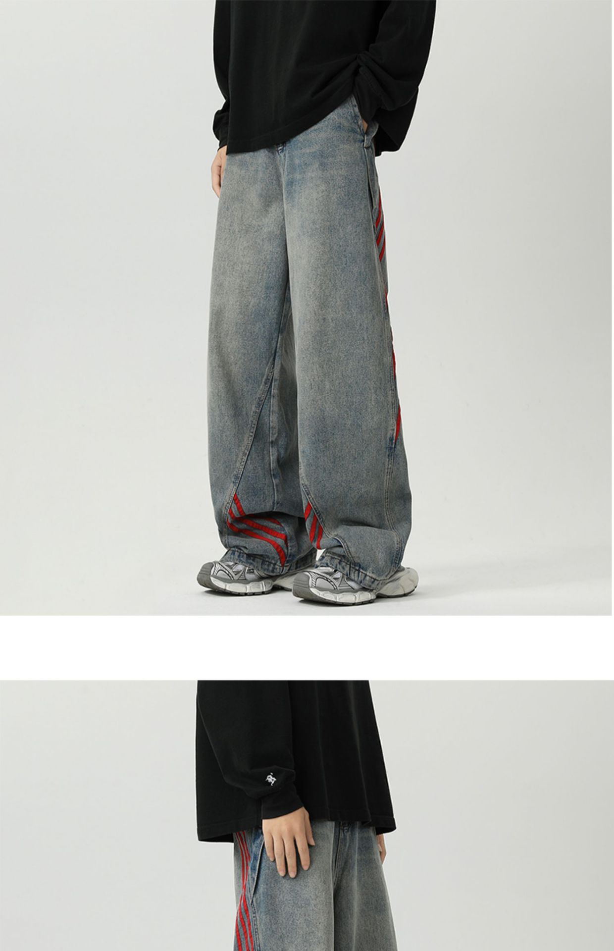 미국식 스트라이프 툴링 청바지 소년 유행 브랜드 새로운 루즈 와이드 레그 하이 스트리트 퍼피 핸섬 캐주얼 롱 팬츠스토어 가기