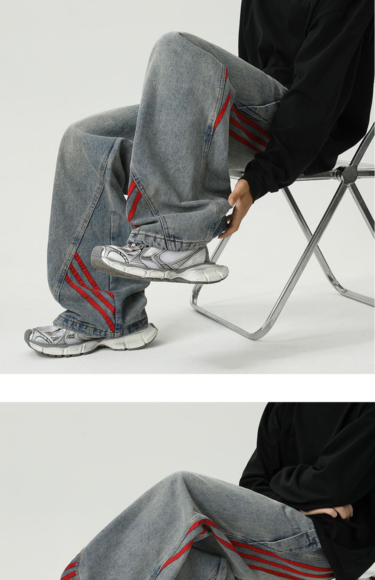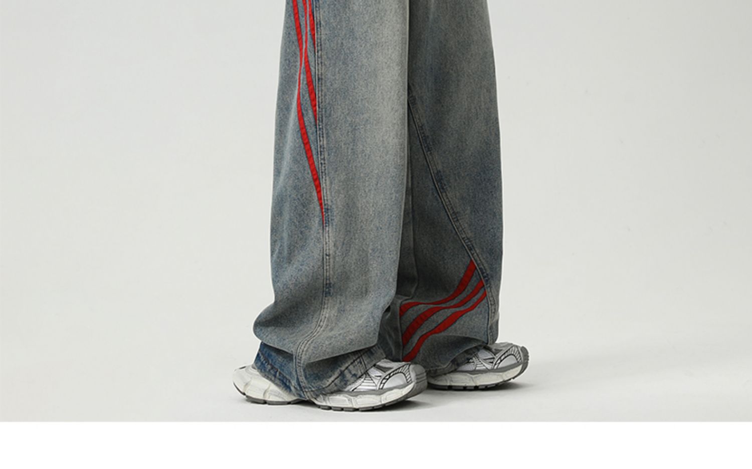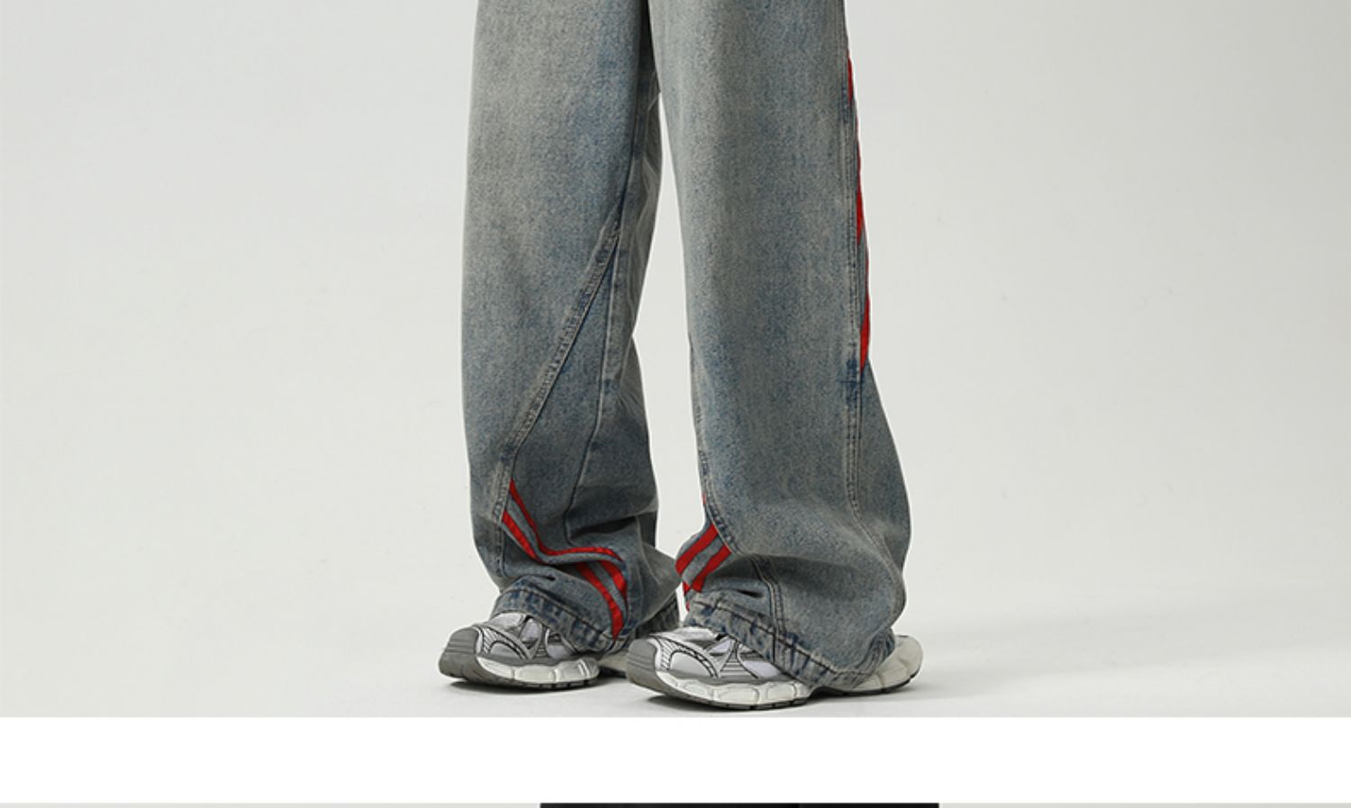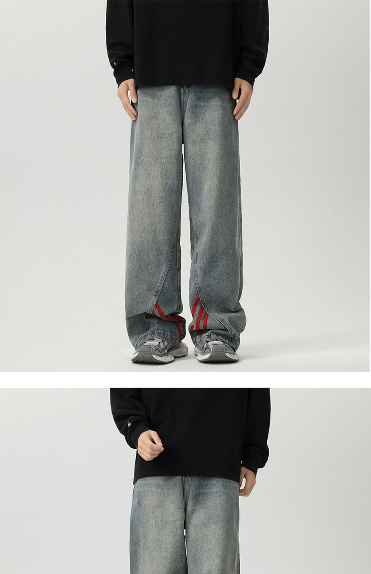 미국식 스트라이프 툴링 청바지 소년 유행 브랜드 새로운 루즈 와이드 레그 하이 스트리트 퍼피 핸섬 캐주얼 롱 팬츠스토어 가기