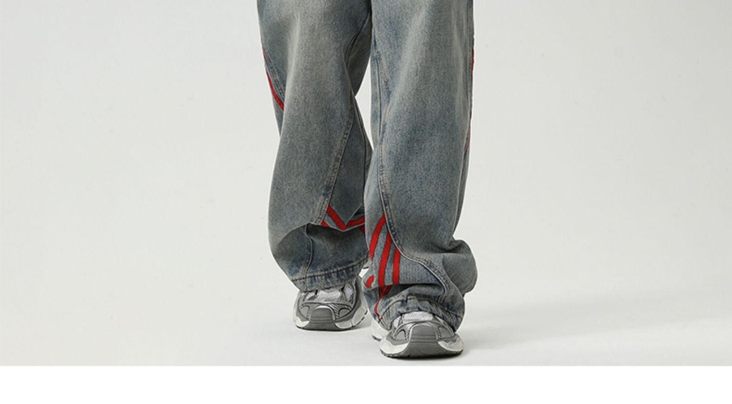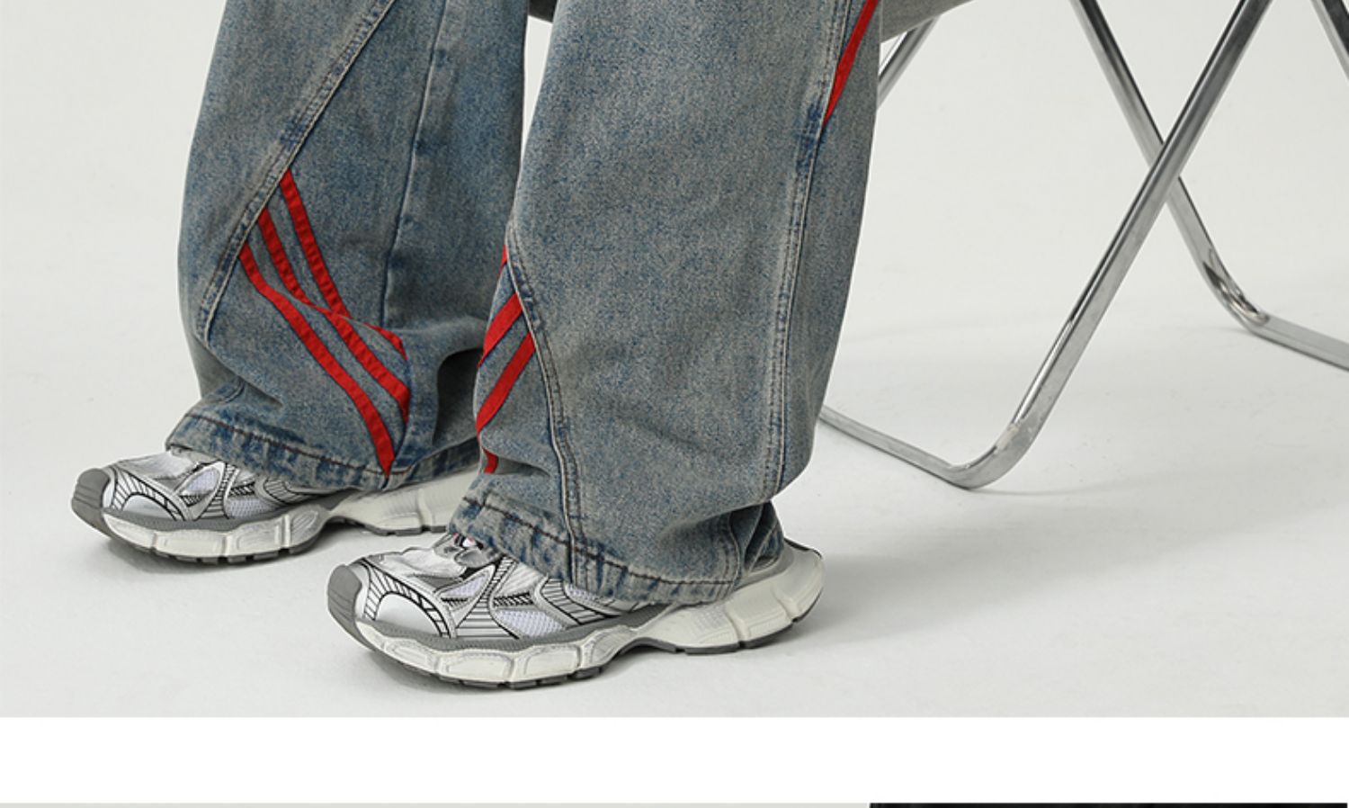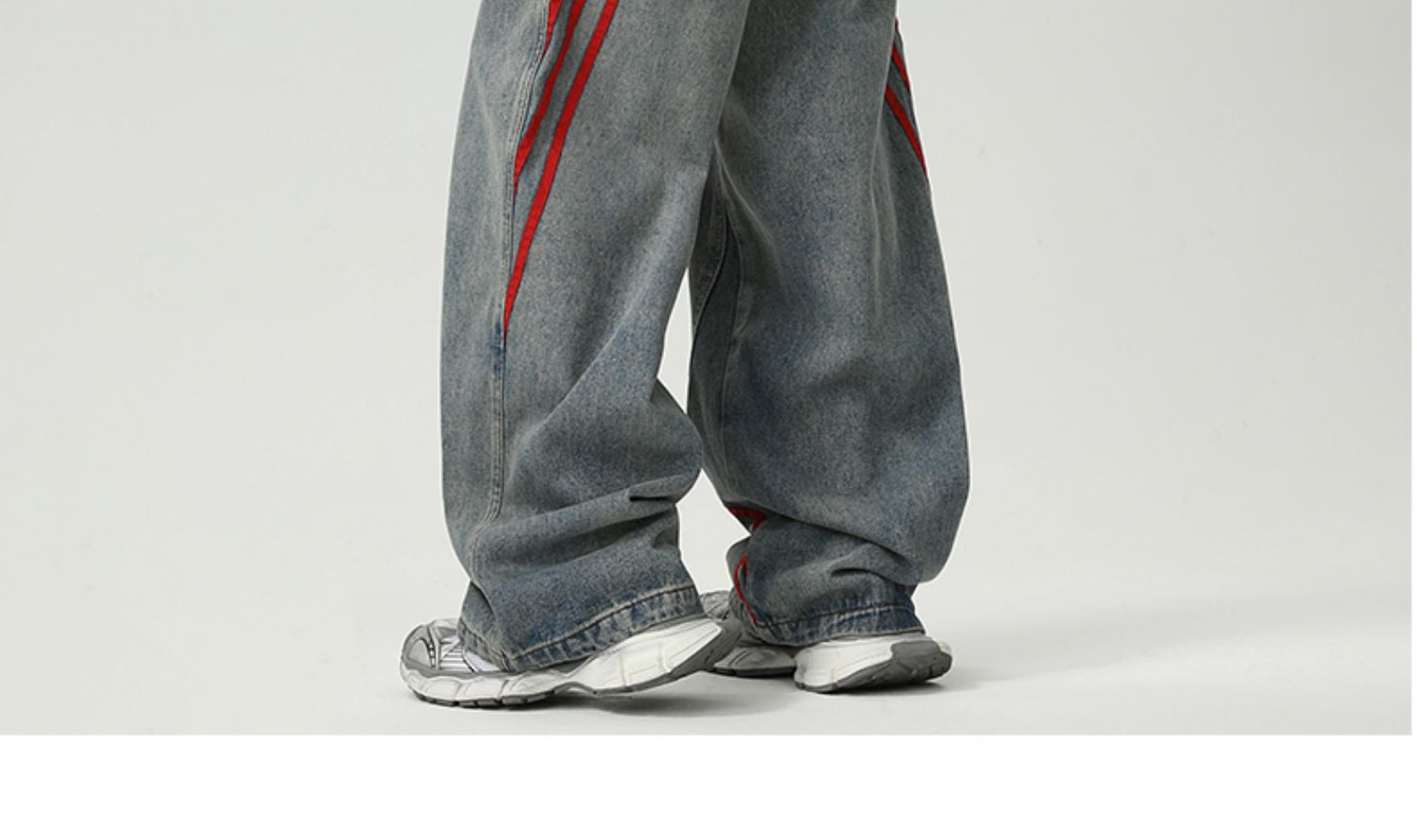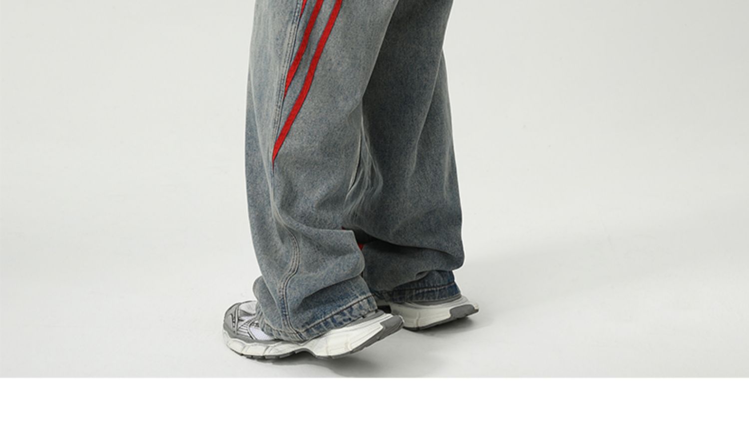 미국식 스트라이프 툴링 청바지 소년 유행 브랜드 새로운 루즈 와이드 레그 하이 스트리트 퍼피 핸섬 캐주얼 롱 팬츠스토어 가기