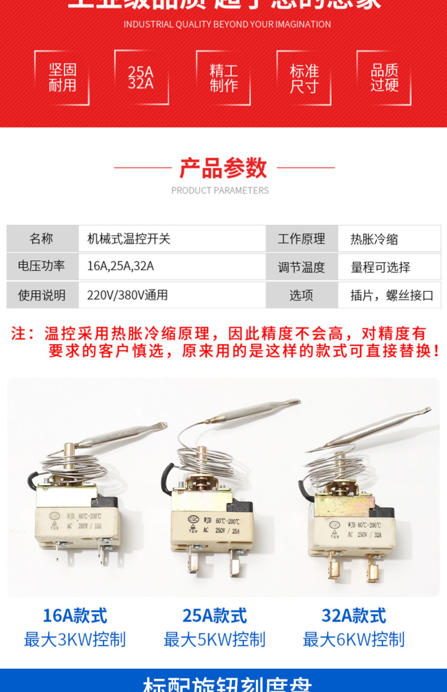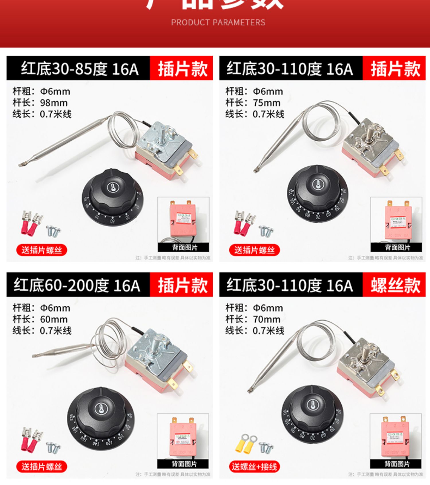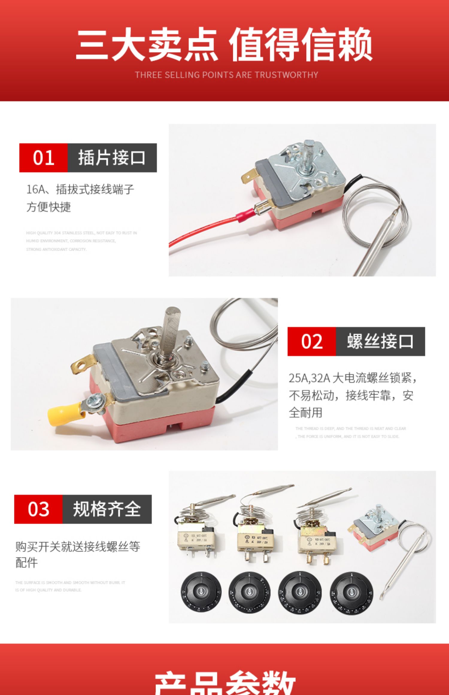 온도 컨트롤러 온도 조절기 전기 케이크 팬 온수 온도 리미터 온도 제어 스위치 온도 컨트롤러 국수 밥솥 온수기
