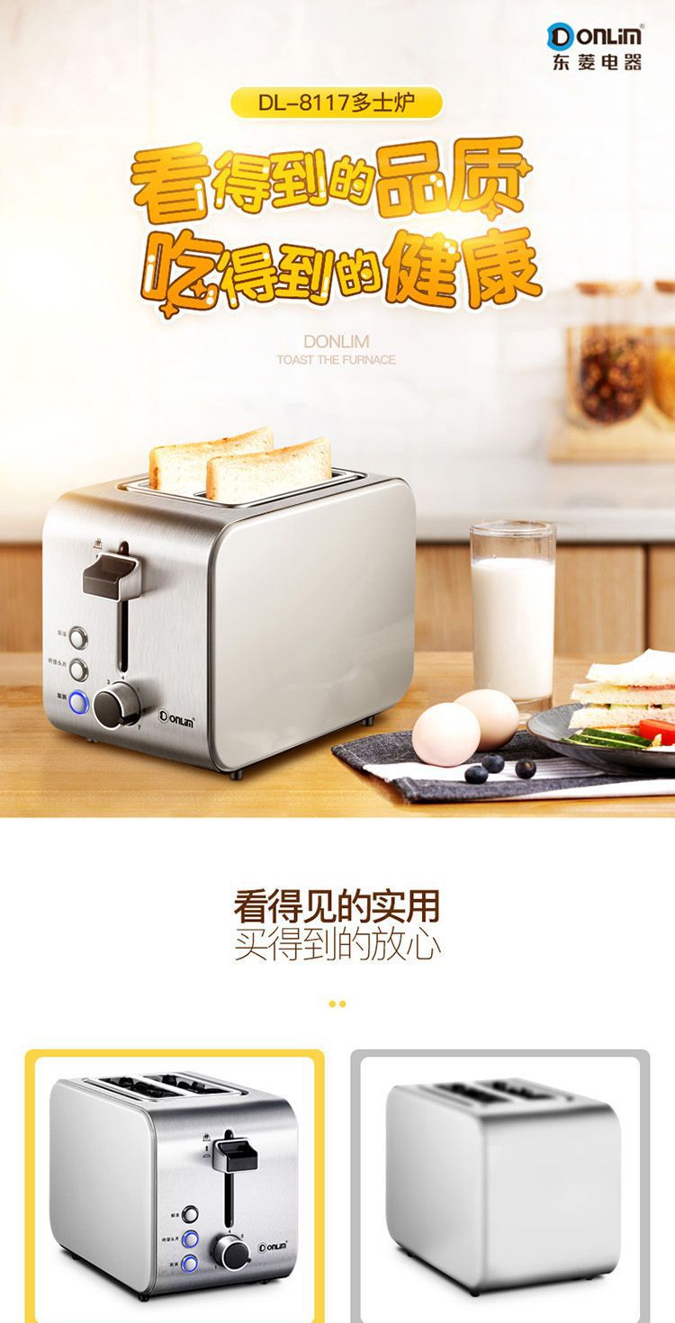 Donlim/Dondling DL-8117 토스터 홈 조식 기계 토스터 스테인레스 스틸 로스트 토스터 드라이버스토어 가기