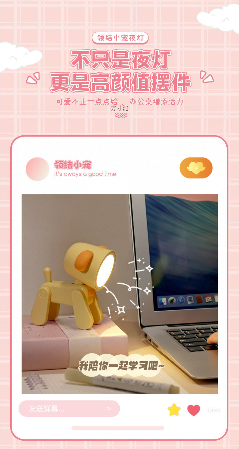 Fawn 개 만화 나이트 라이트 테이블 램프 충전식 귀여운 애완 동물 미니 테이블 램프 여성을위한 충전식 생일 선물스토어 가기