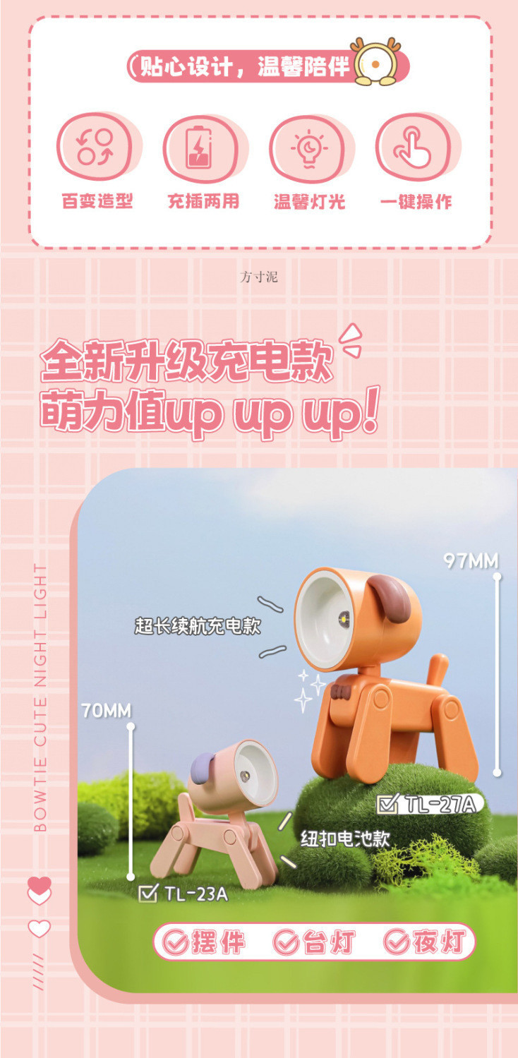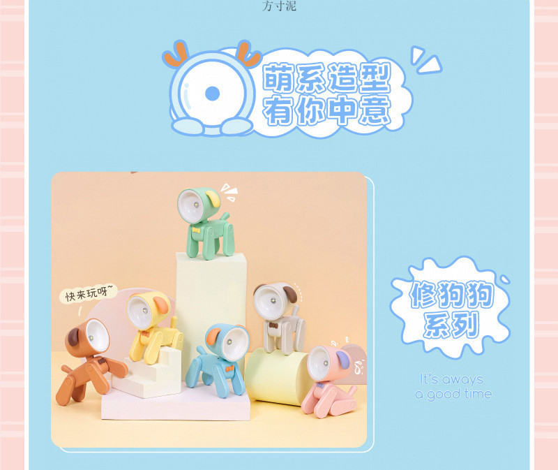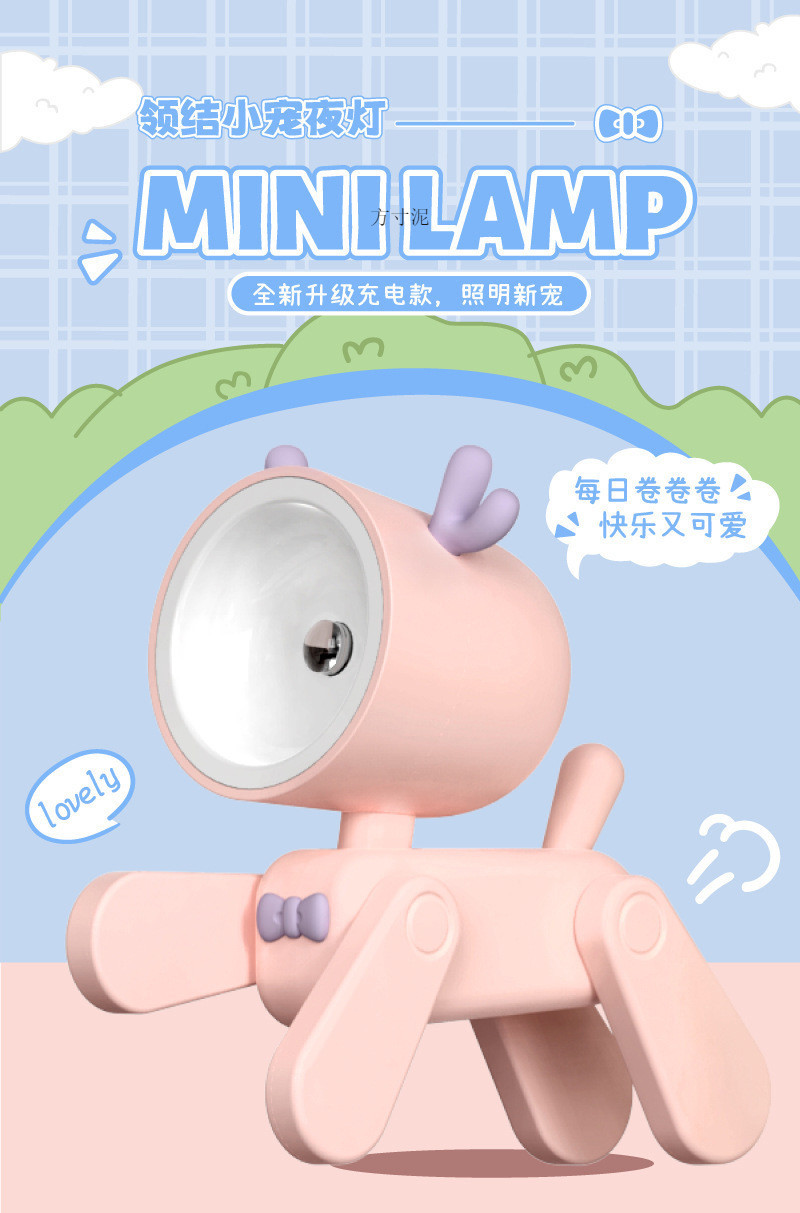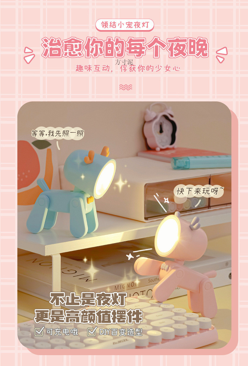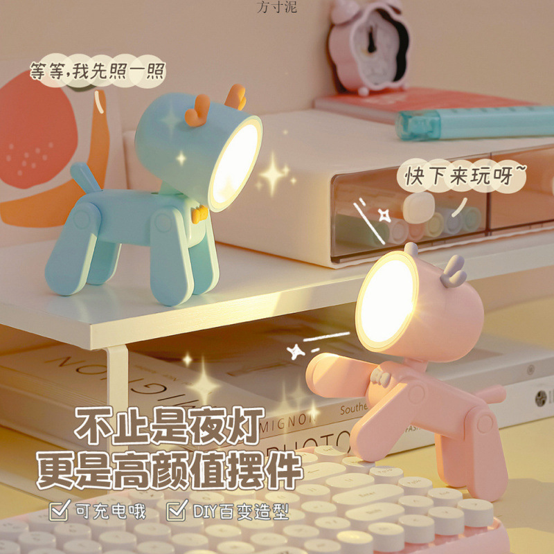 Fawn 개 만화 나이트 라이트 테이블 램프 충전식 귀여운 애완 동물 미니 테이블 램프 여성을위한 충전식 생일 선물