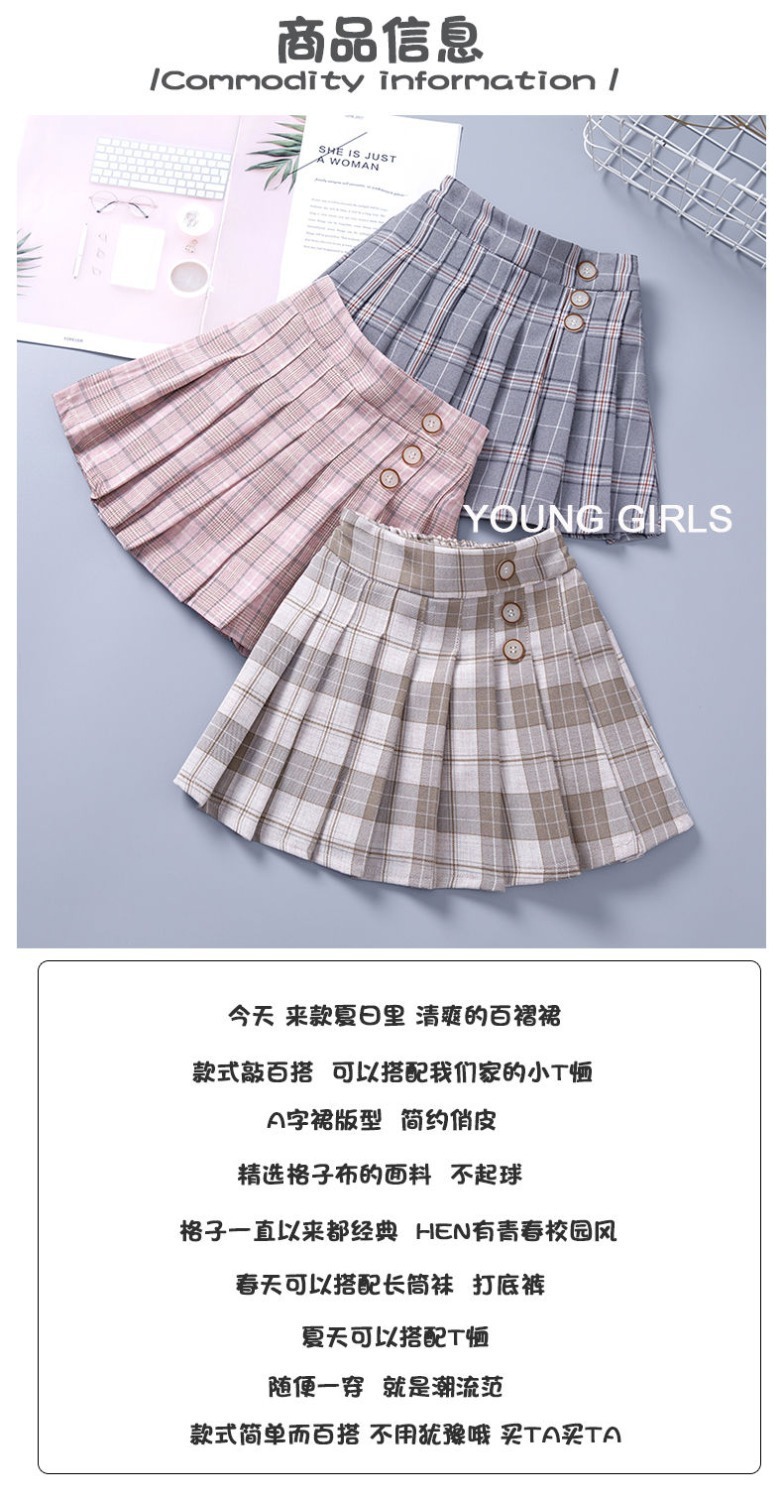 여자 스커트 주름 스커트 2025 여름 새로운 대학 스타일 어린이 격자 무늬 스커트 서양식 어린 소녀 스커트스토어 가기