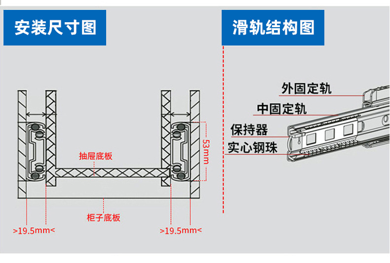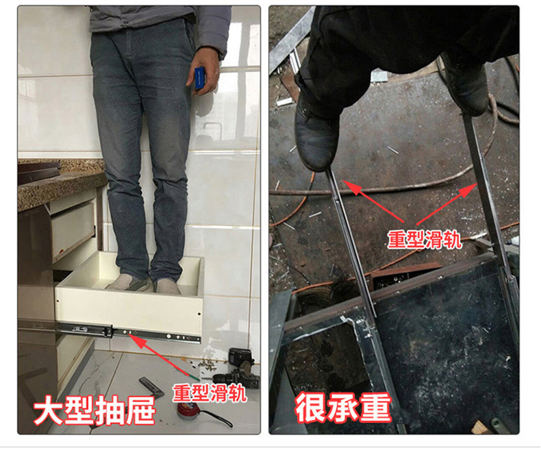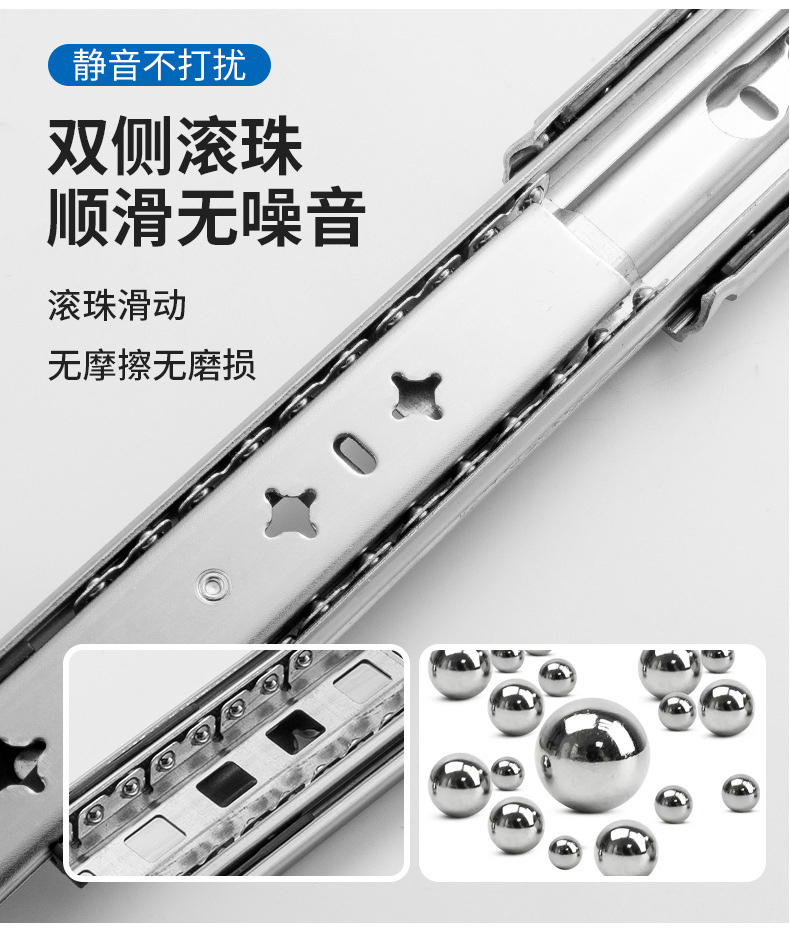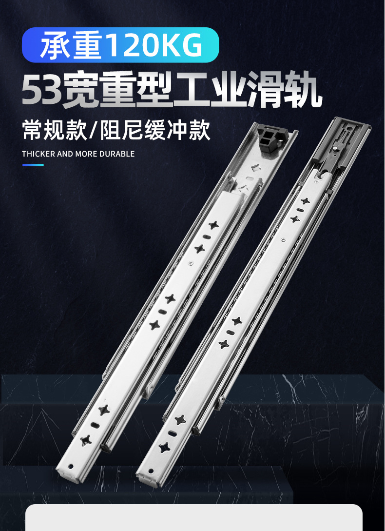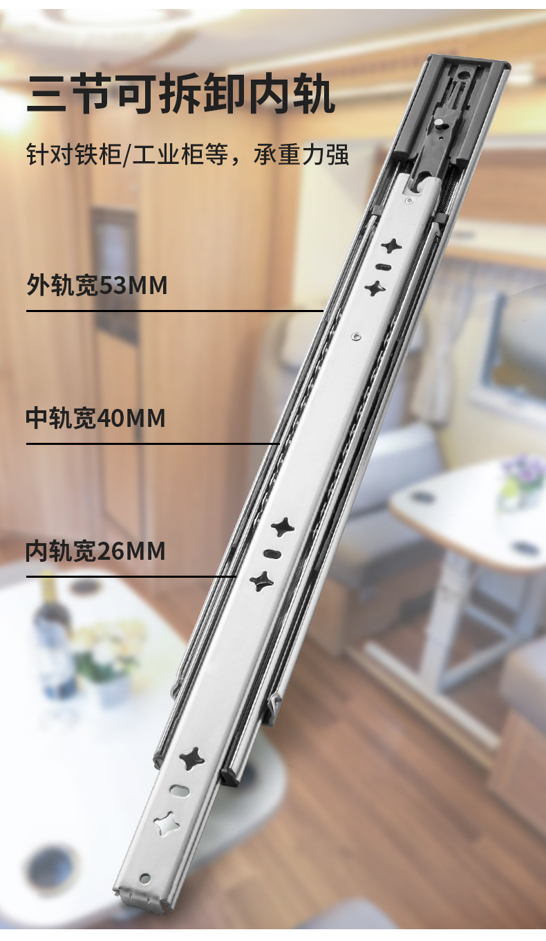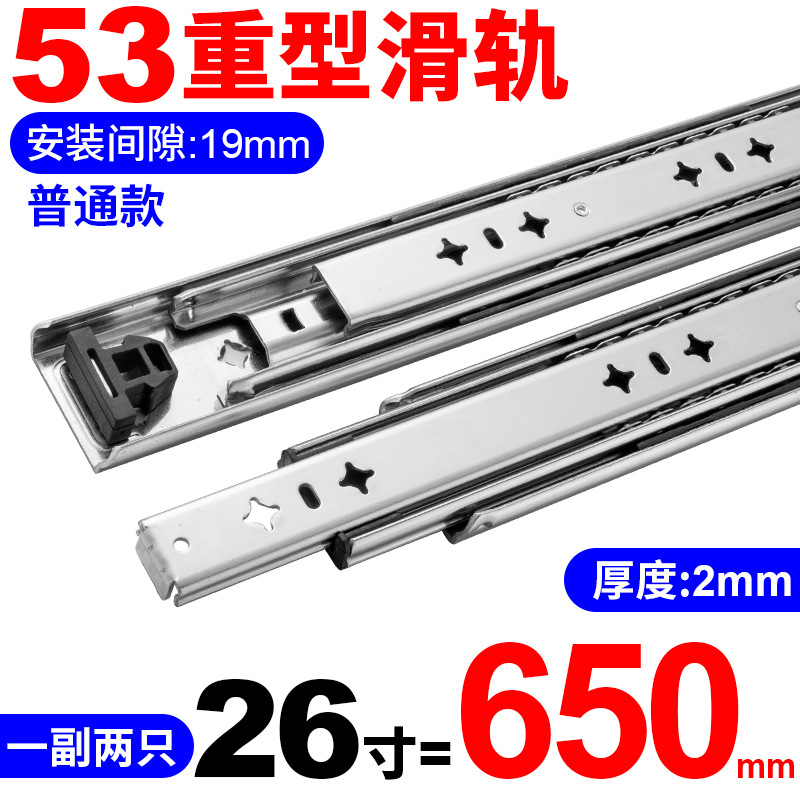 53 넓은 대형 슬라이드 레일 산업용 두꺼운 3 섹션 슬라이드 캐비닛 음소거 하중 베어링 레일 RV 서랍 트랙 도매