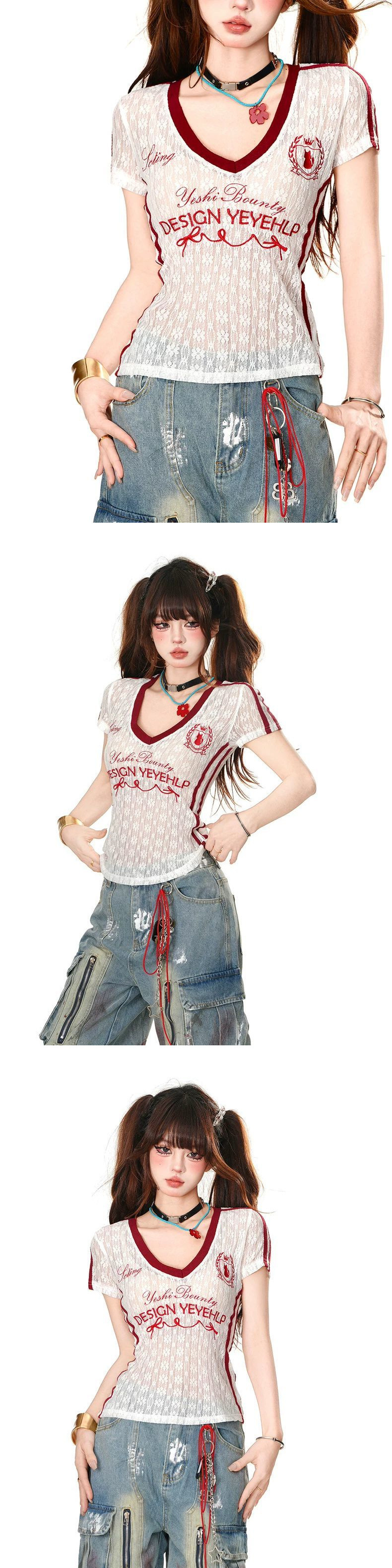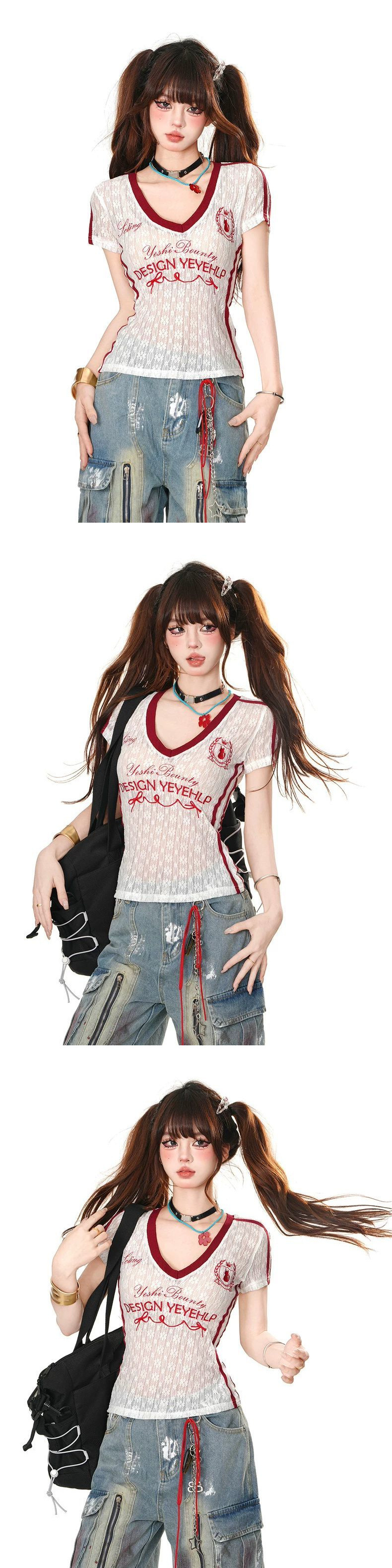 빈티지 숄더 뉴 반팔 콘트라스트 컬러 스티칭 스파이스 소녀 핑크 슬림 핏 아메리칸 여름 슬림 핏 쇼트 탑스토어 가기