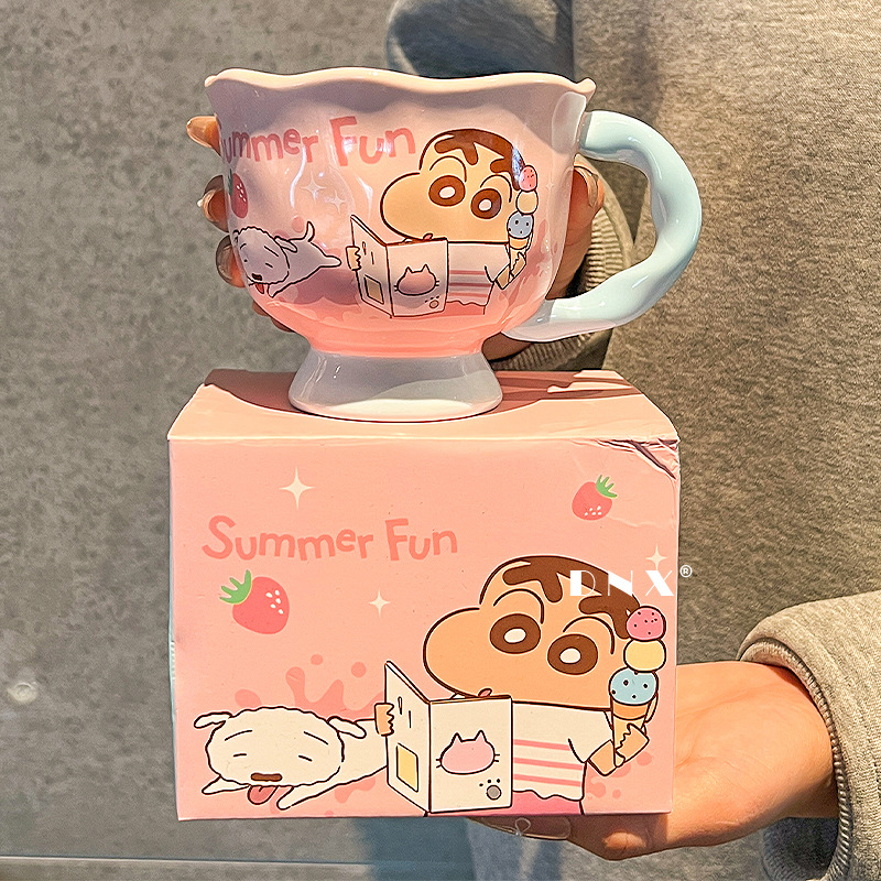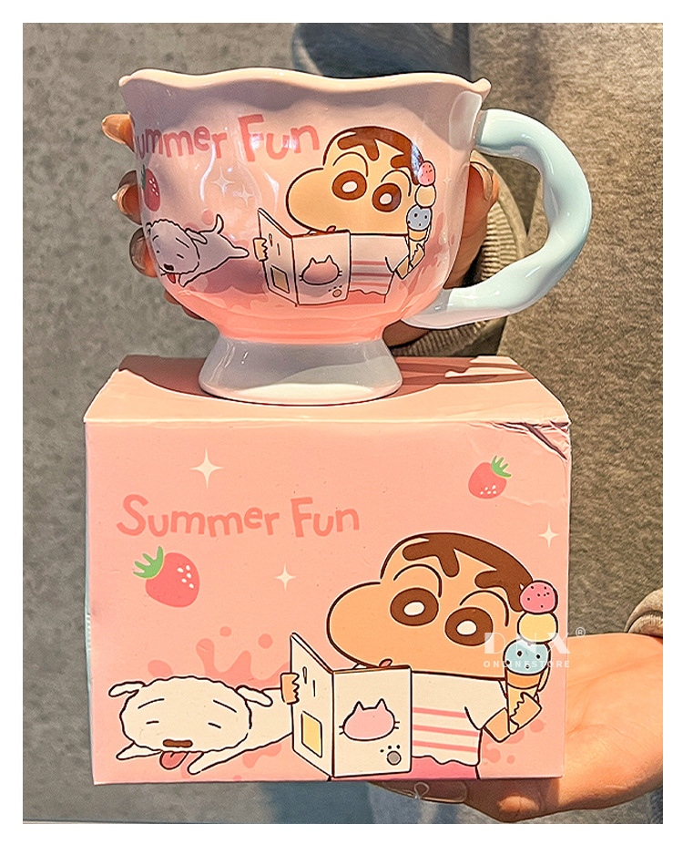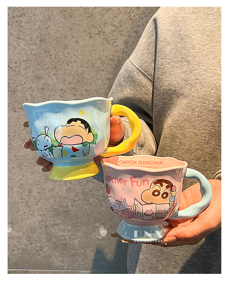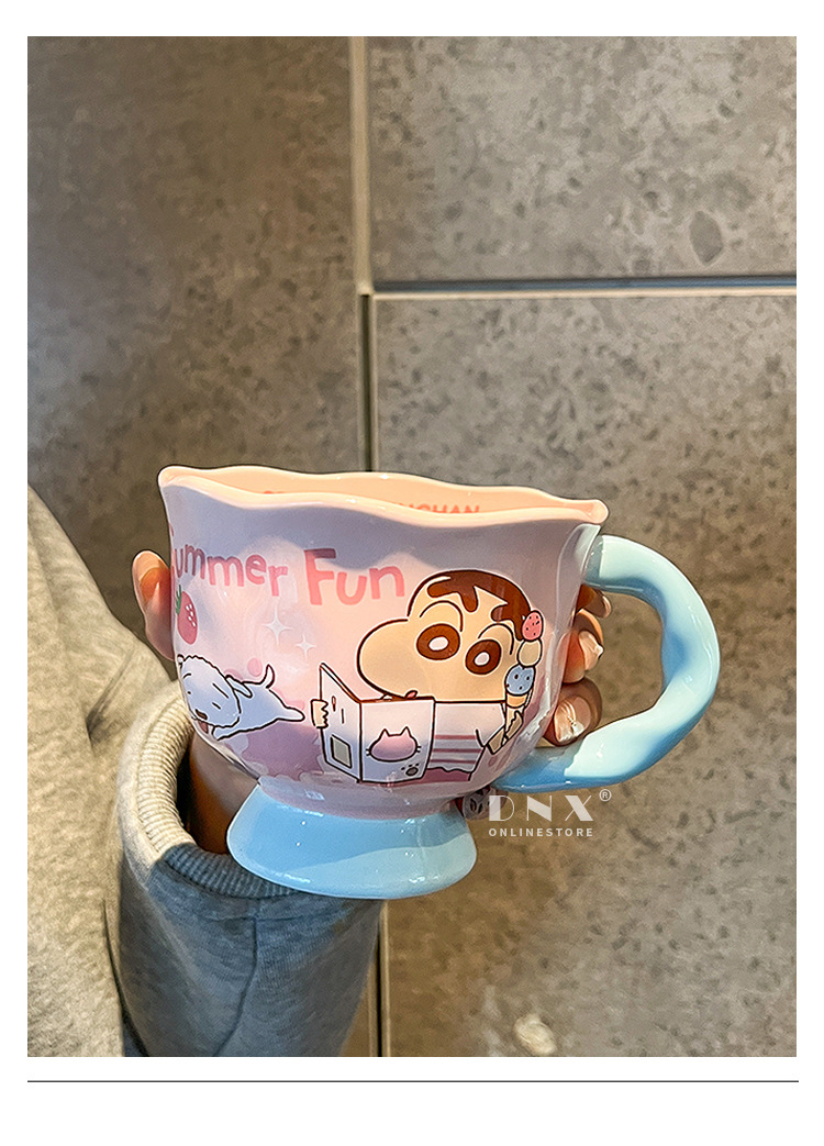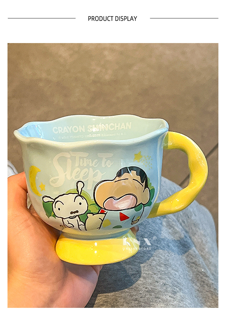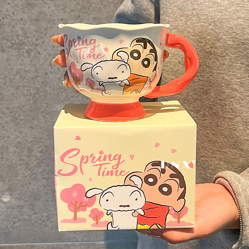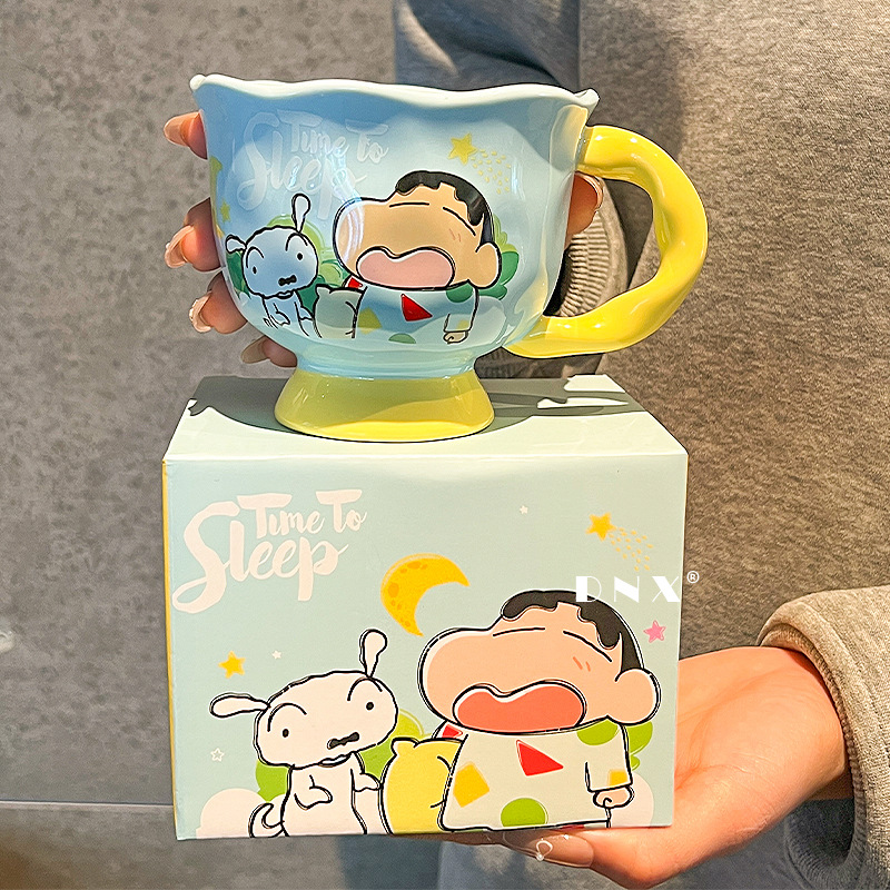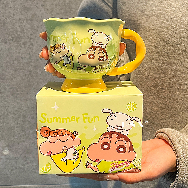 크레용 신 머그잔 귀여운 만화 세라믹 물 컵 높은 색 가치 커플 커피 컵 어린이 아침 우유 컵스토어 가기