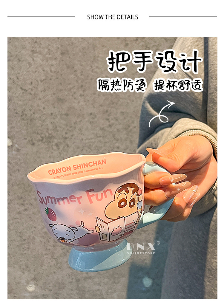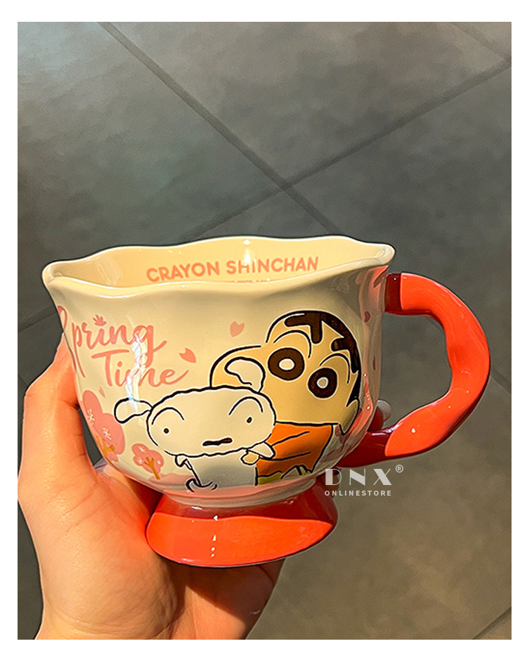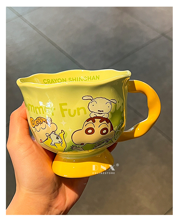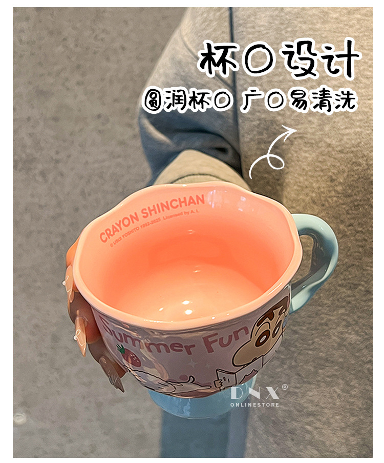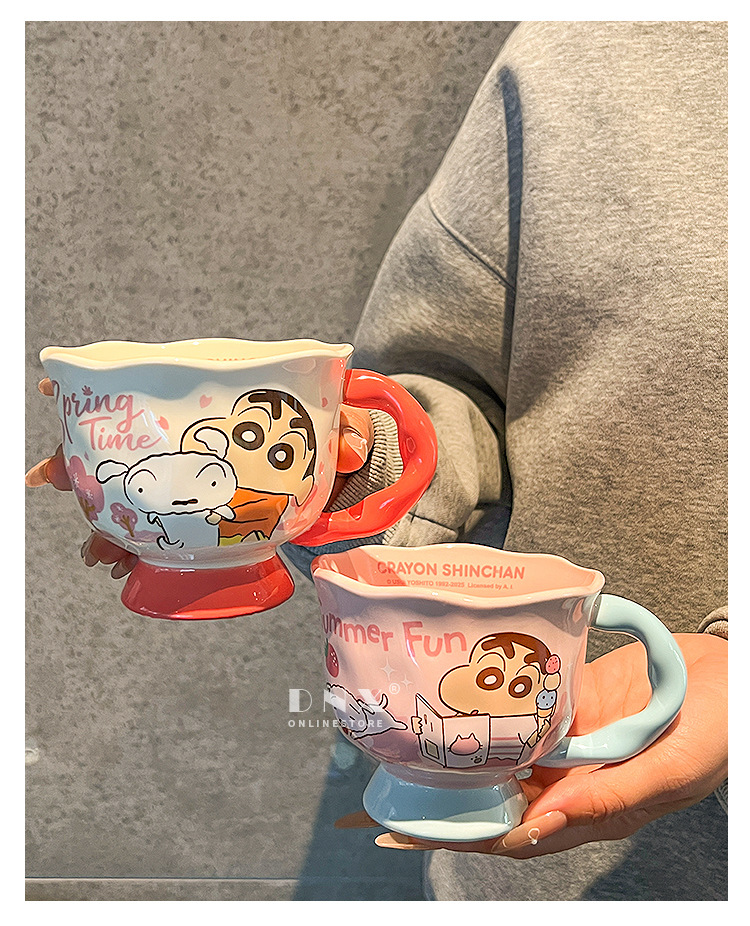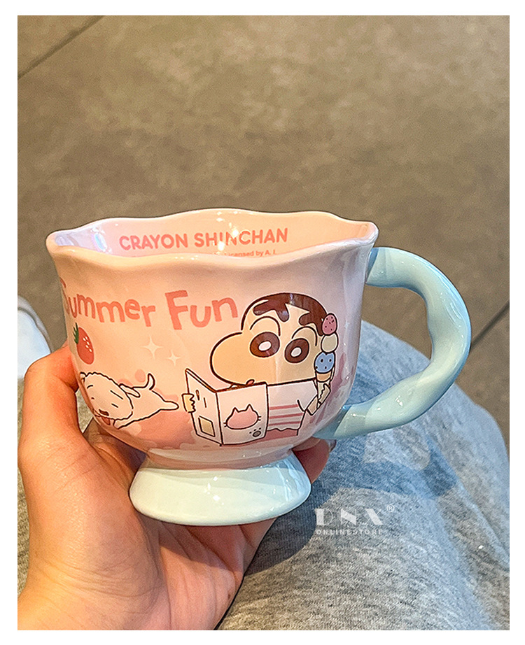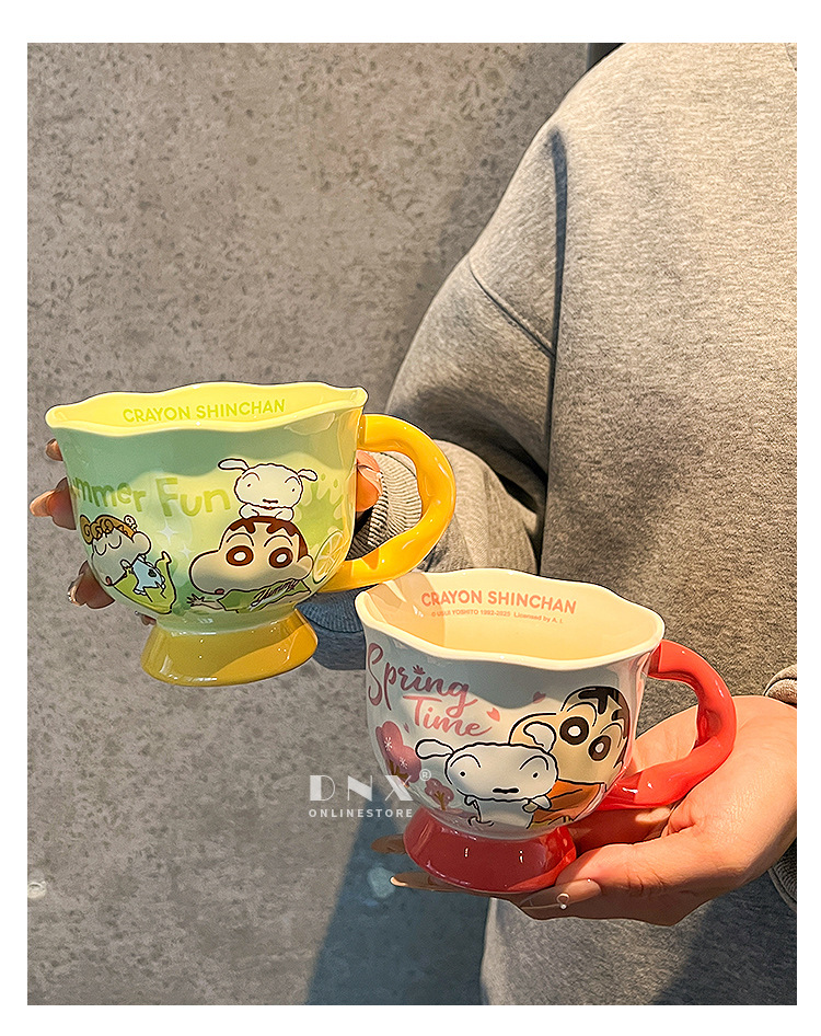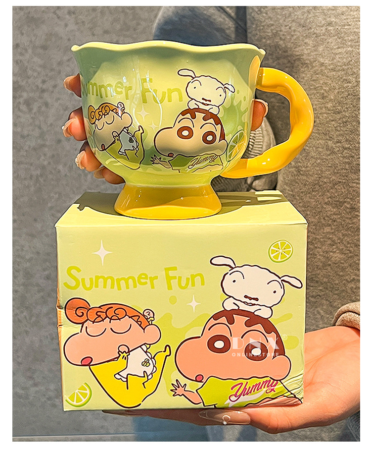 크레용 신 머그잔 귀여운 만화 세라믹 물 컵 높은 색 가치 커플 커피 컵 어린이 아침 우유 컵스토어 가기