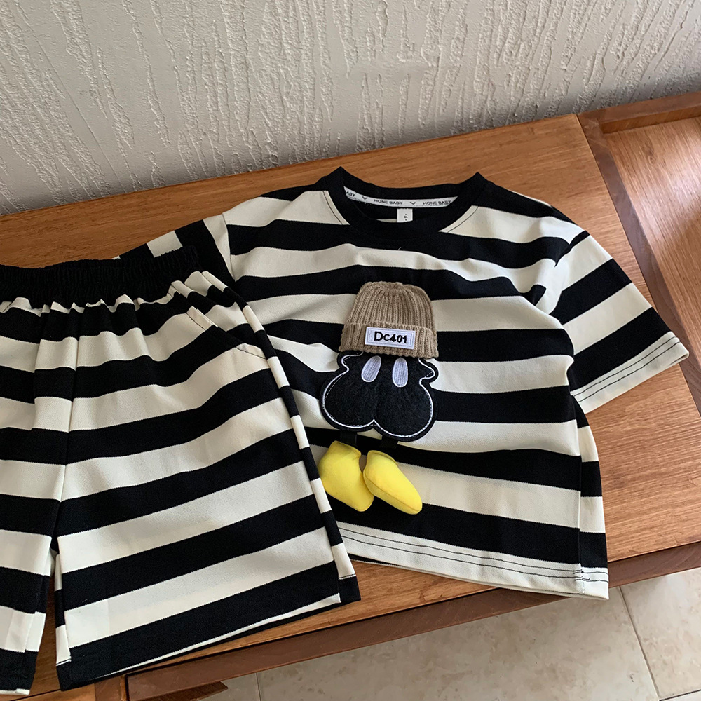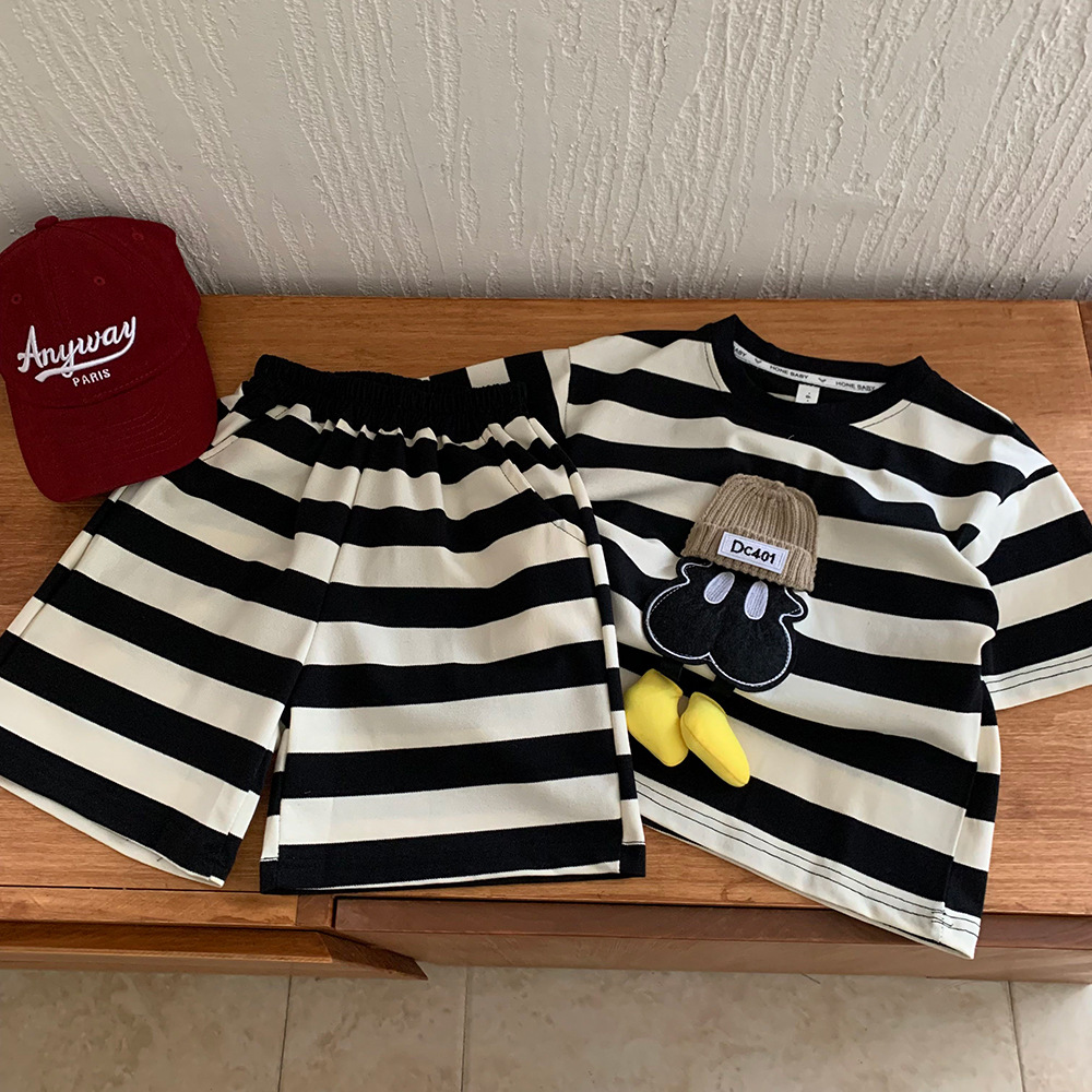어린이 흑백 줄무늬 반바지 여름 아동복 새 소년 올매치 루즈 캐주얼 바지