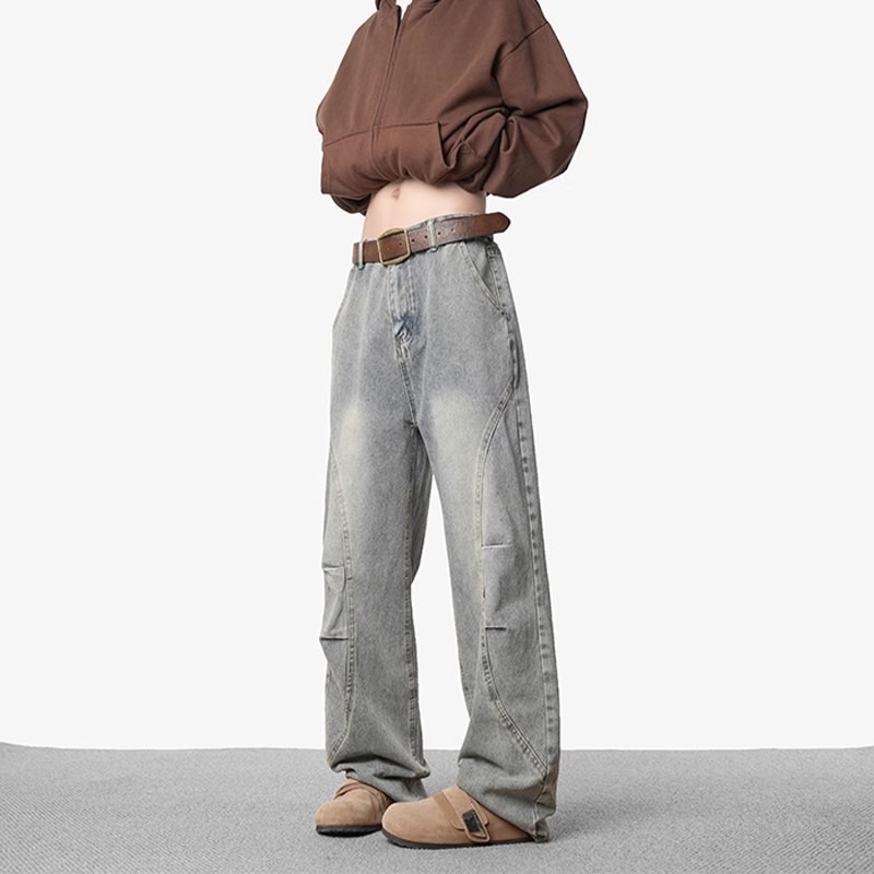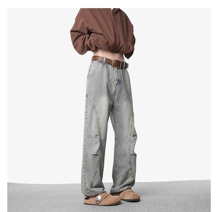 남성용 아메리칸 레트로 디컨스트럭티드 디스트레스드 워싱 청바지 2025 여름 트렌디 브랜드 루즈한 하이 스트리트 다용도 와이드 팬츠