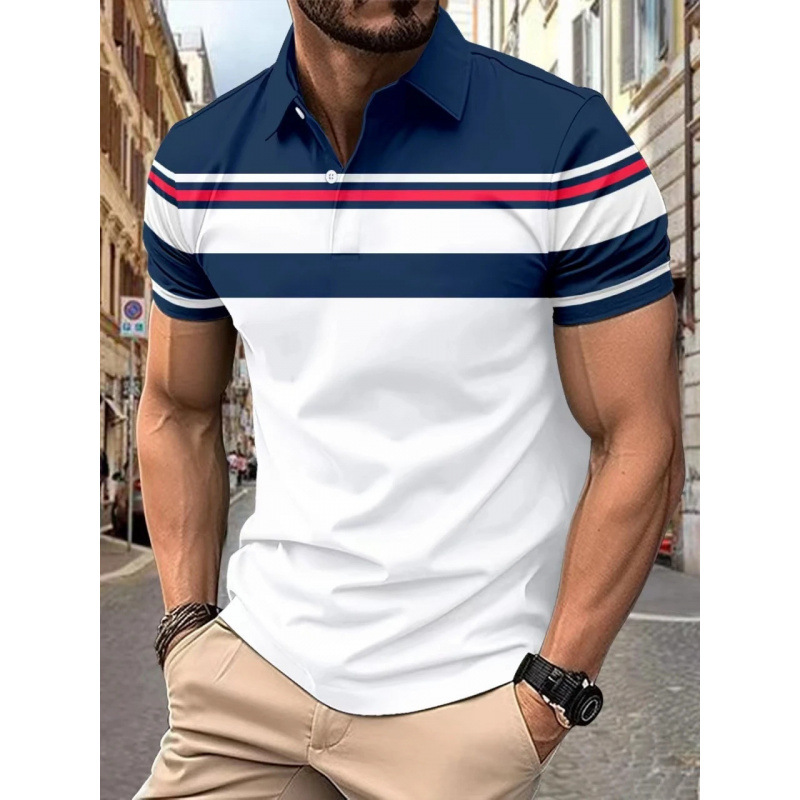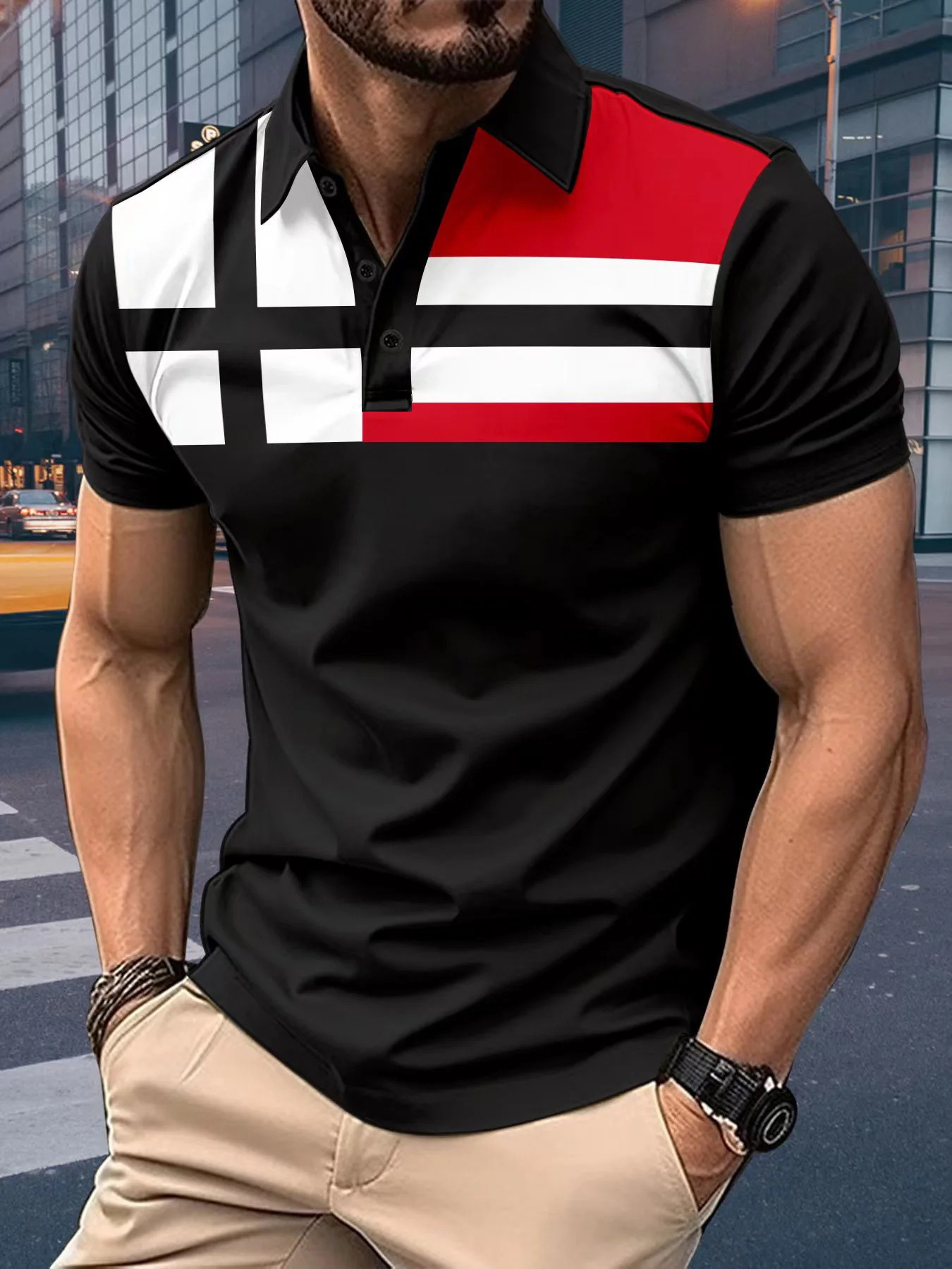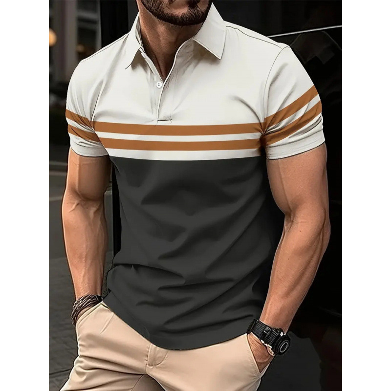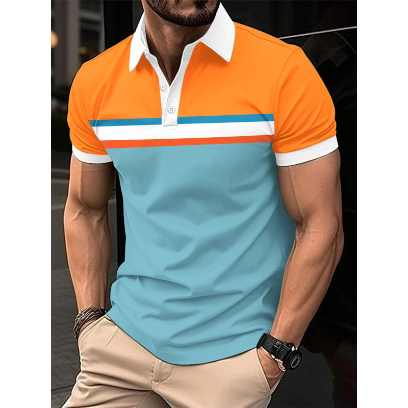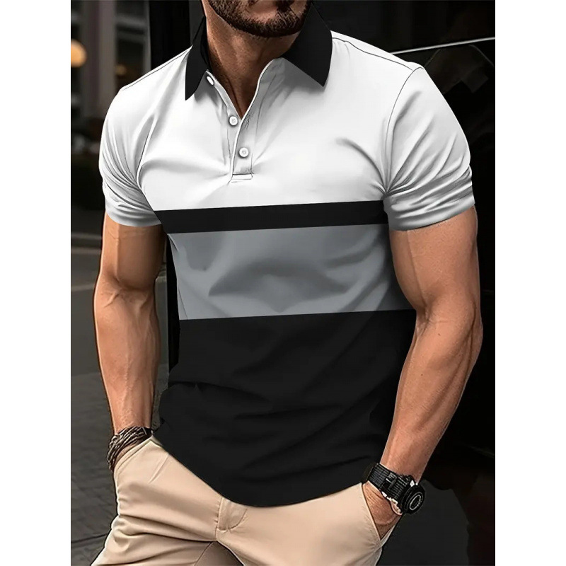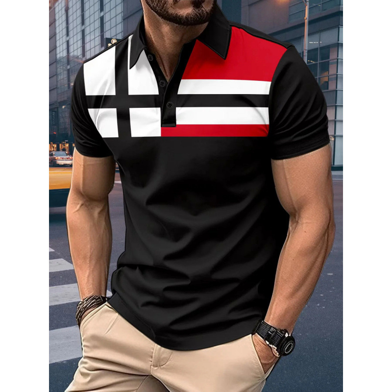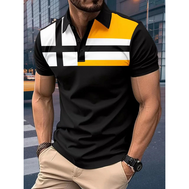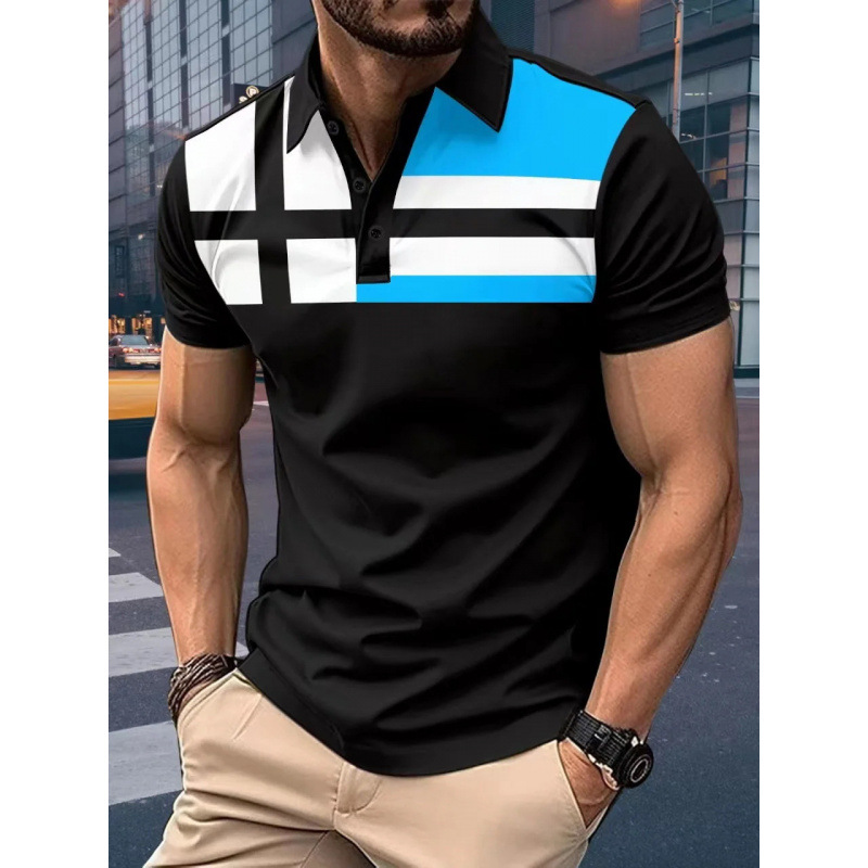2025 유럽과 미국의 대외 무역 국경 3D 패턴 패션 POLO 셔츠 남성 긴 소매 버튼 컬러 매칭 프린트 탑 티셔츠