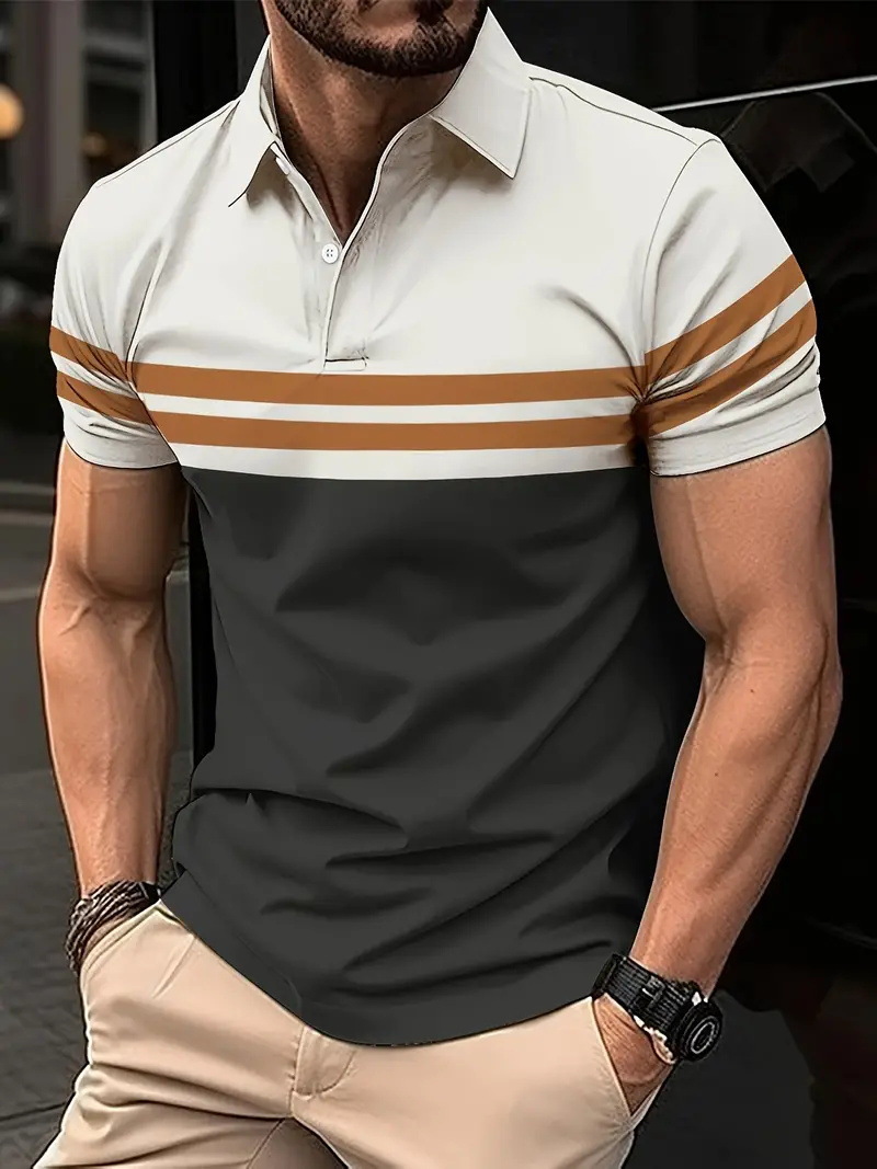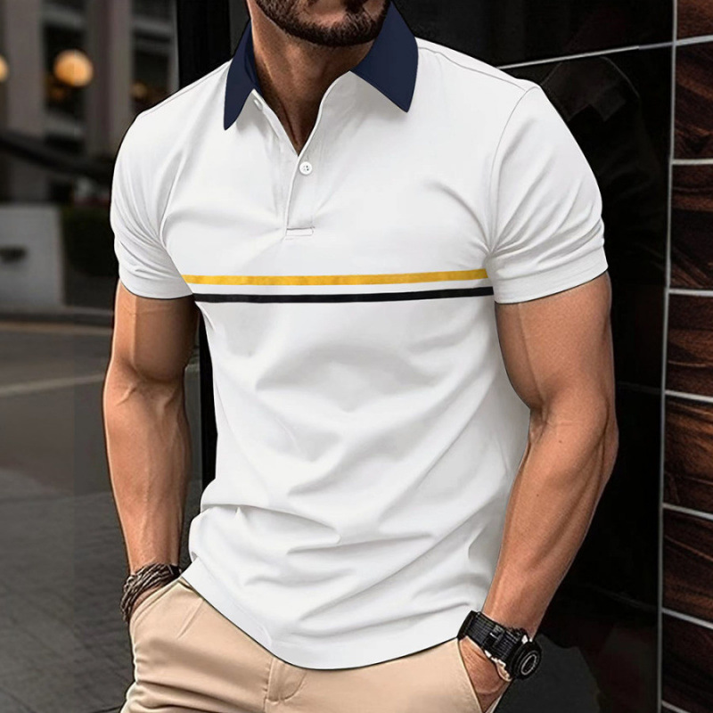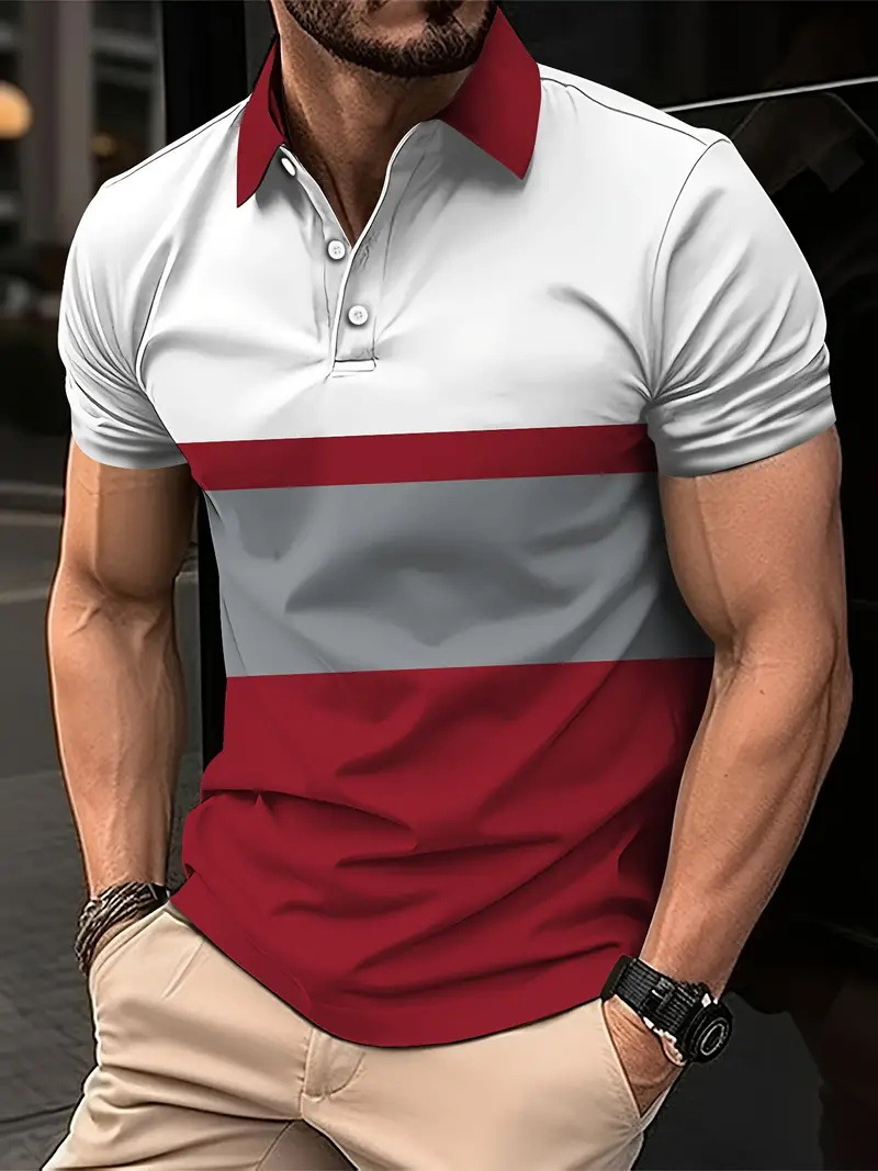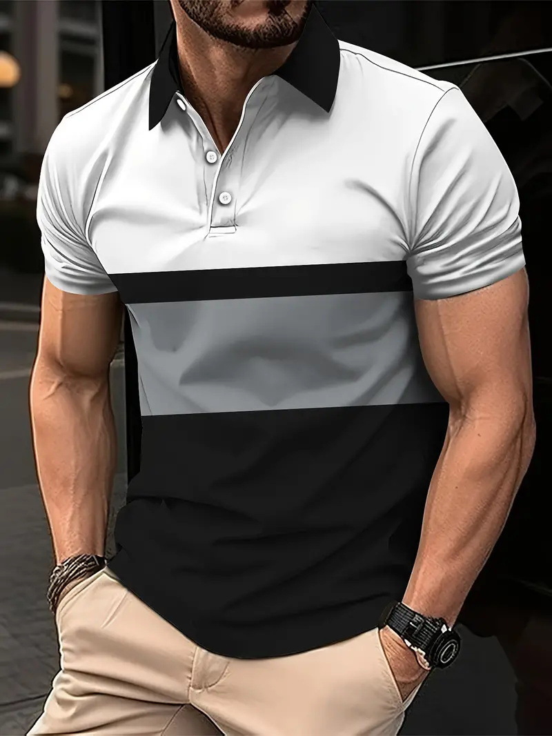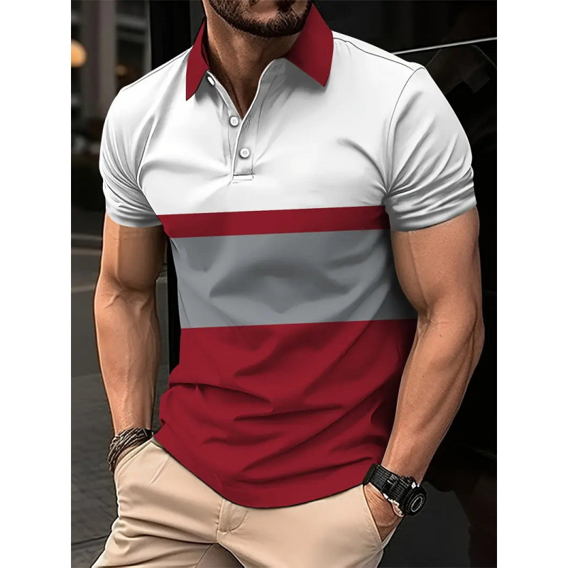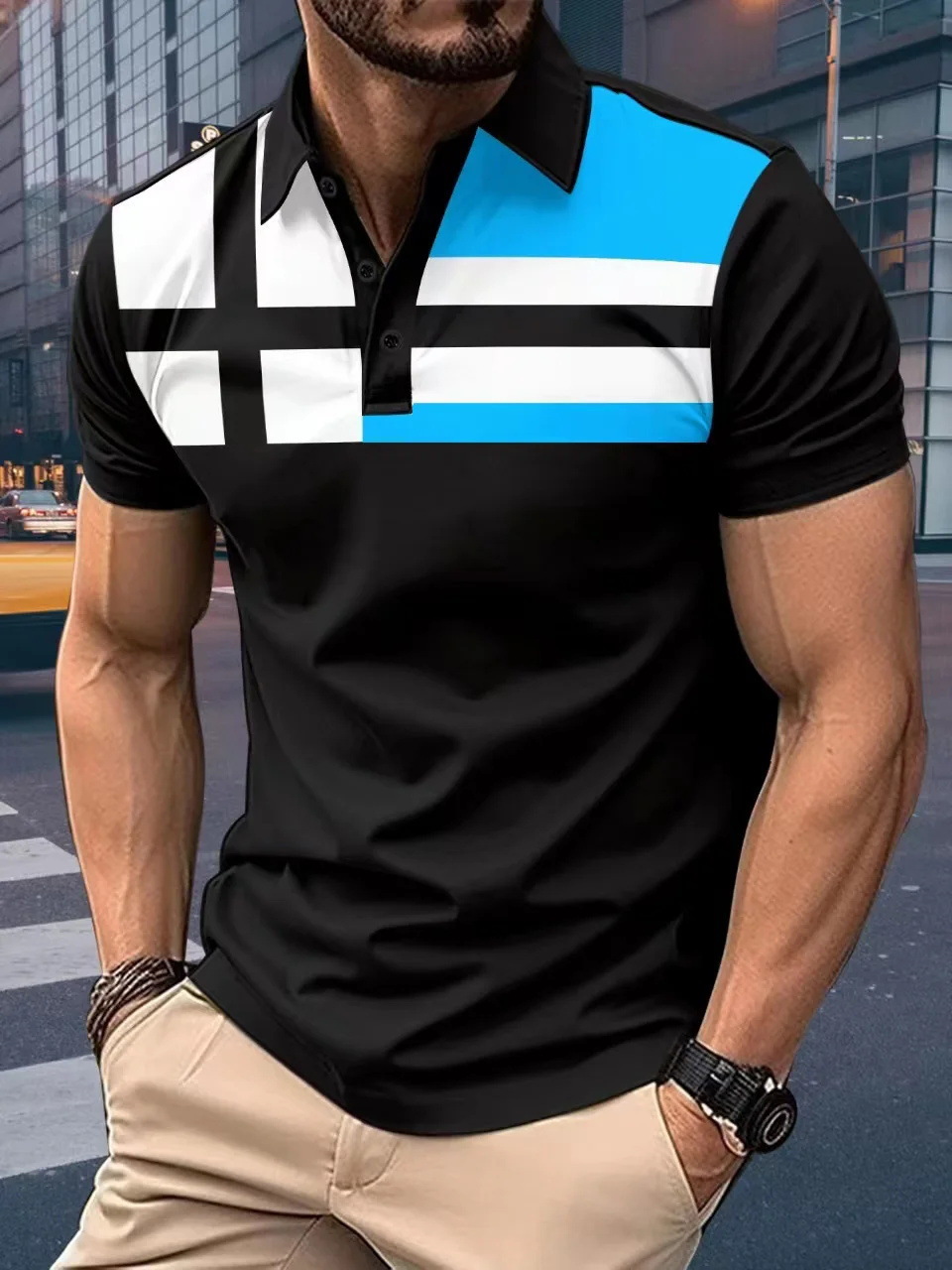 2025 유럽과 미국의 대외 무역 국경 3D 패턴 패션 POLO 셔츠 남성 긴 소매 버튼 컬러 매칭 프린트 탑 티셔츠