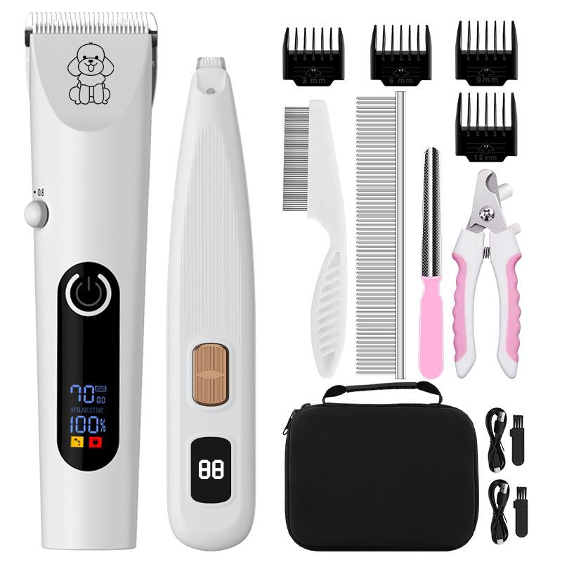• 애완동물용 전기 이발기 + 페디큐어 기계 [와이드 나이프 LED 디지털 디스플레이] 세트