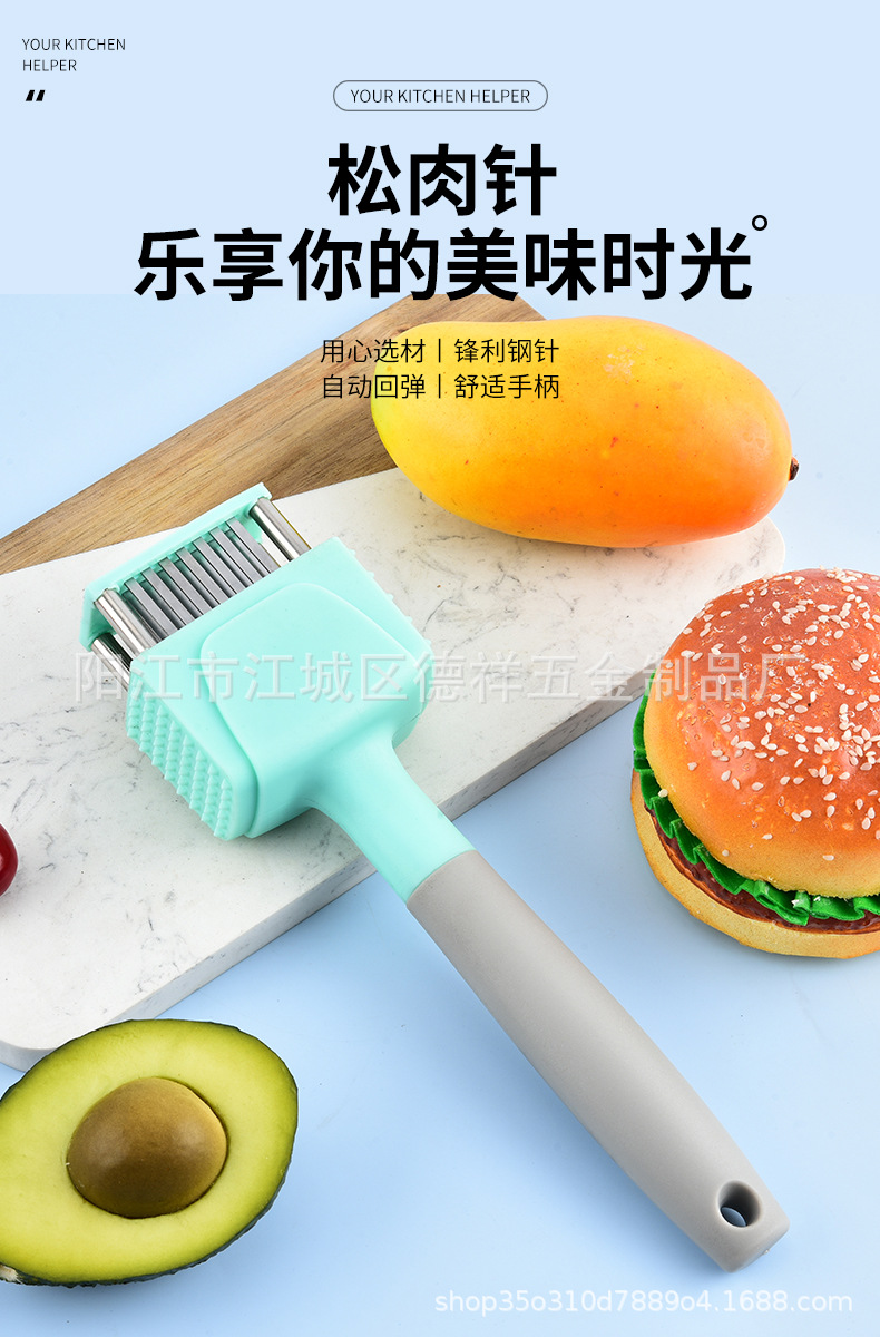 스테인레스 스틸 고기 푸는 바늘, 가정용 주방 스테이크 고기 푸는 도구, 구멍 뚫기 및 뼈 절단기, 2-in-1 고기 푸는 도구, 고기 망치스토어 가기