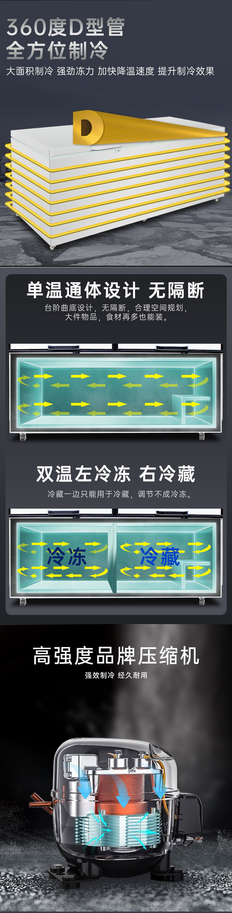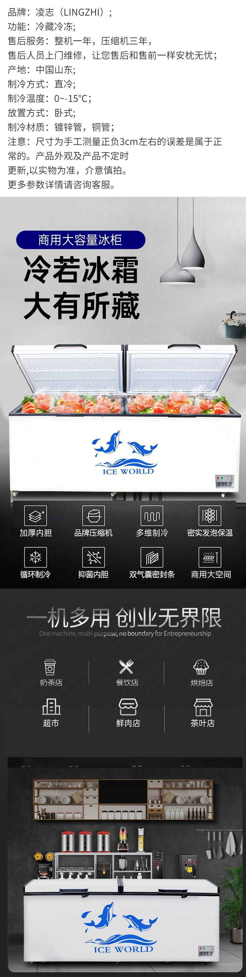 냉장고 두 배 온도 상업용 가정용 대용량 냉동고 신선한 유지 냉장 냉동고 냉장고 디스플레이 캐비닛 수평 슈퍼마켓 아이스크림