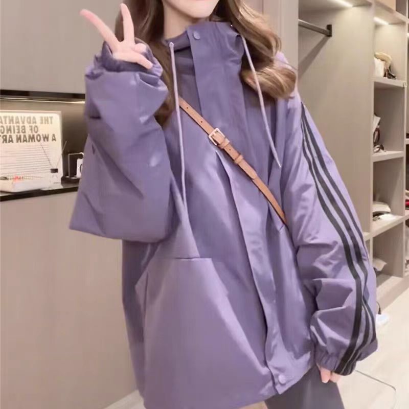 봄과 가을 새로운 느슨한 캐주얼 방풍 폭풍 옷 유행 후드 재킷 여성 유행 한국 스타일 올 매치 재킷 탑