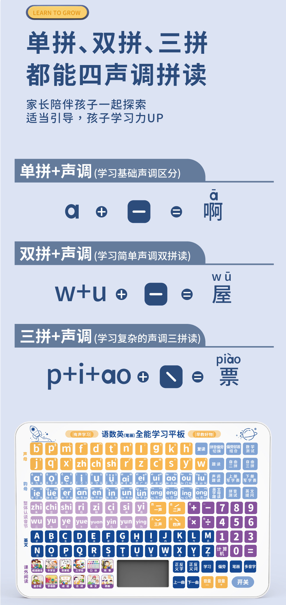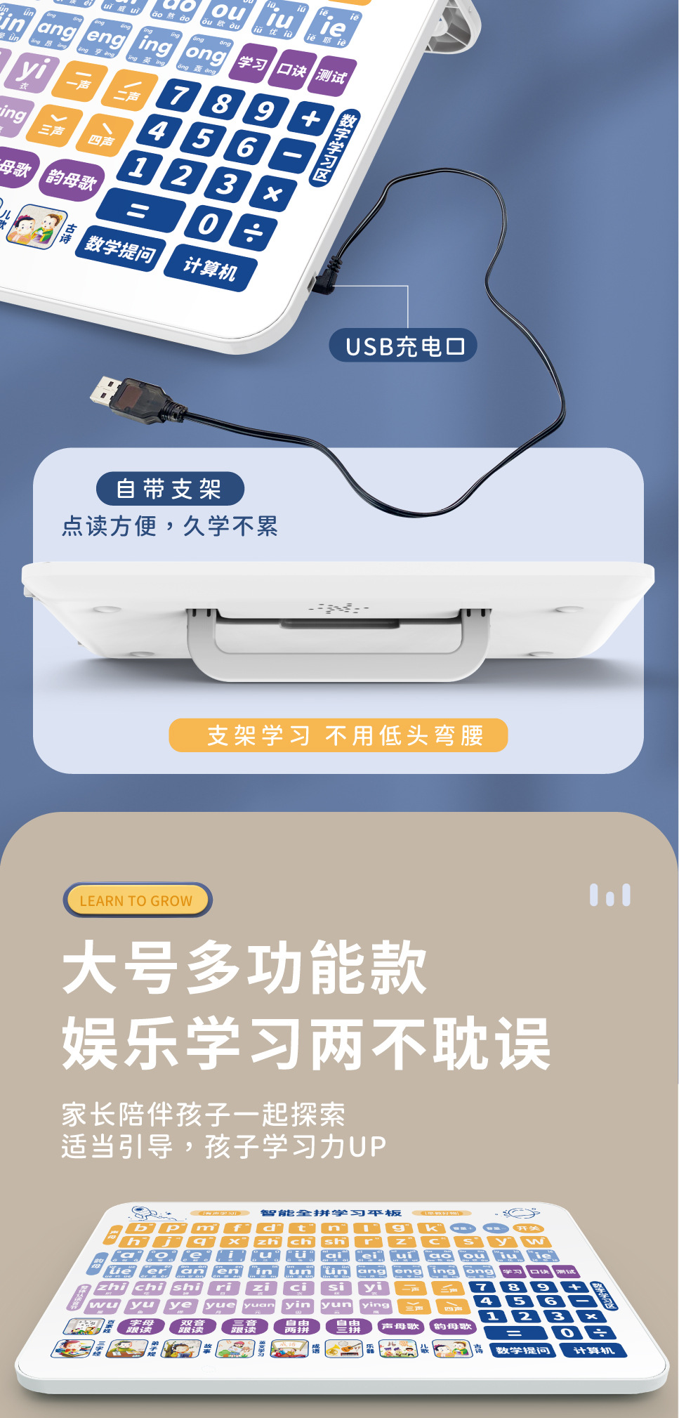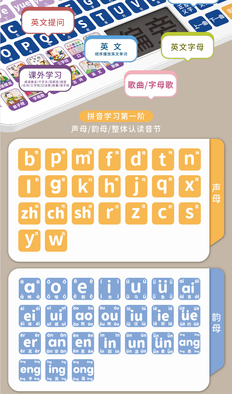 어린이 다기능 학습기, 유아 교육 기계, 계몽 퍼즐 병음 학습 태블릿, 스마트 독서 기계 장난감
