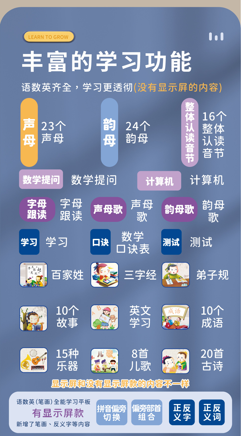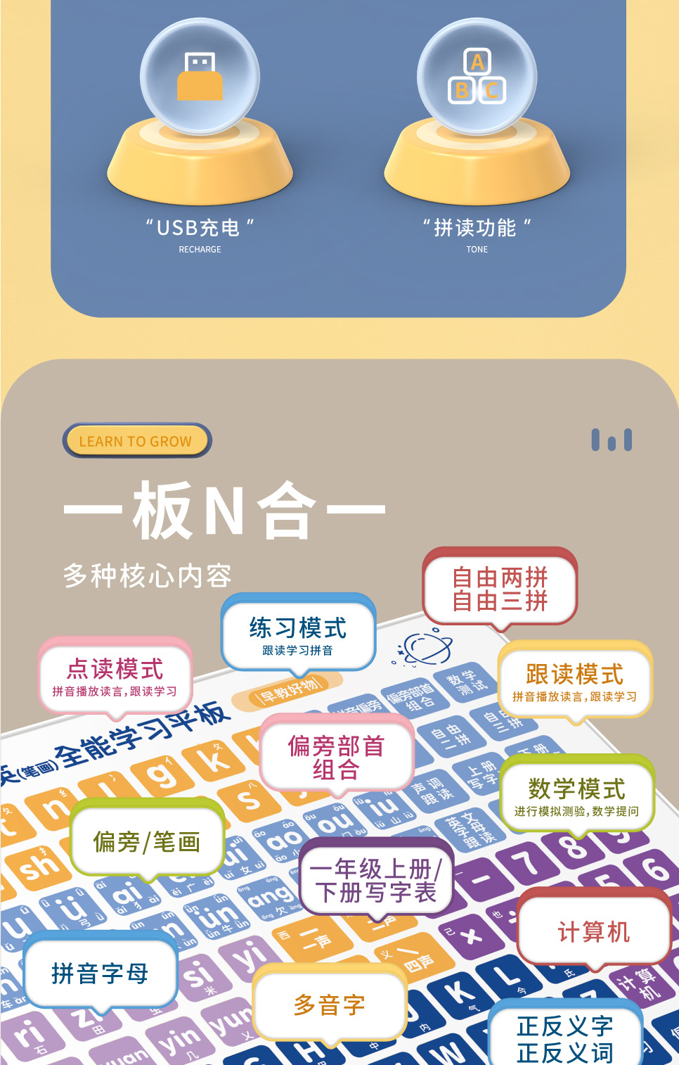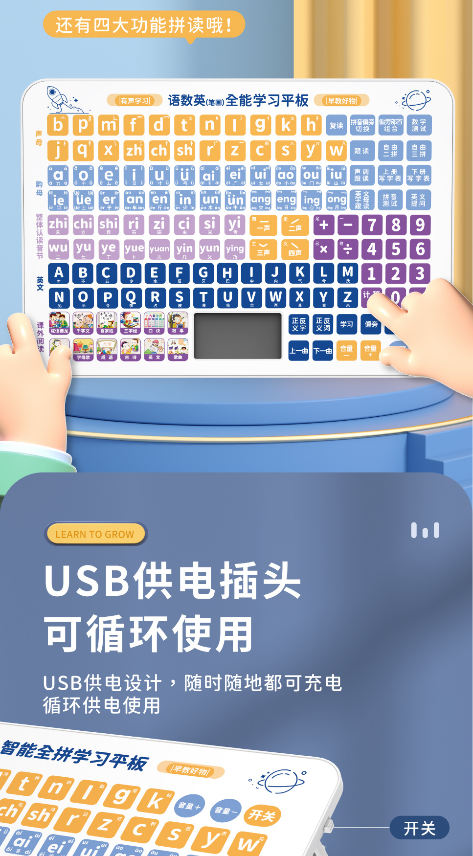 어린이 다기능 학습기, 유아 교육 기계, 계몽 퍼즐 병음 학습 태블릿, 스마트 독서 기계 장난감