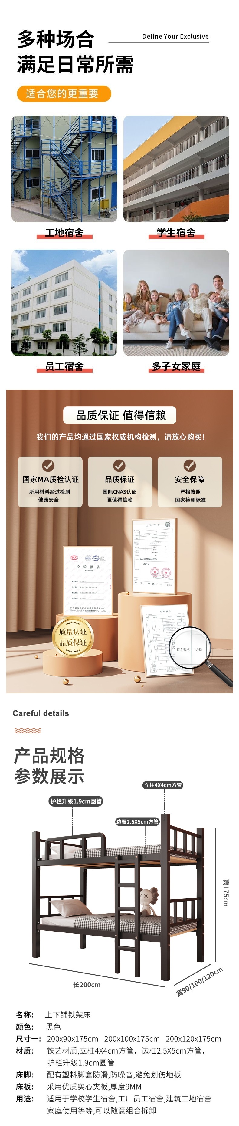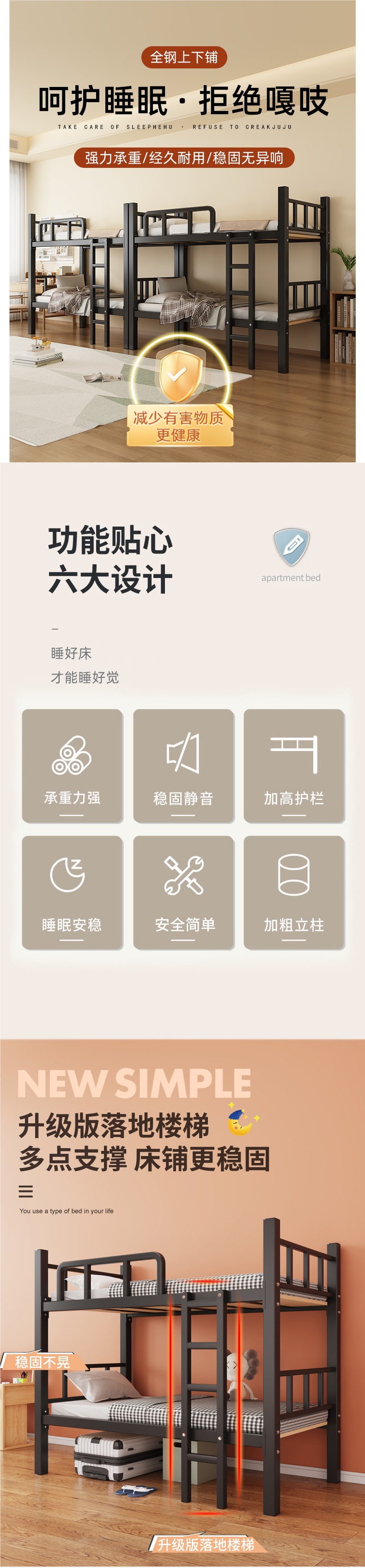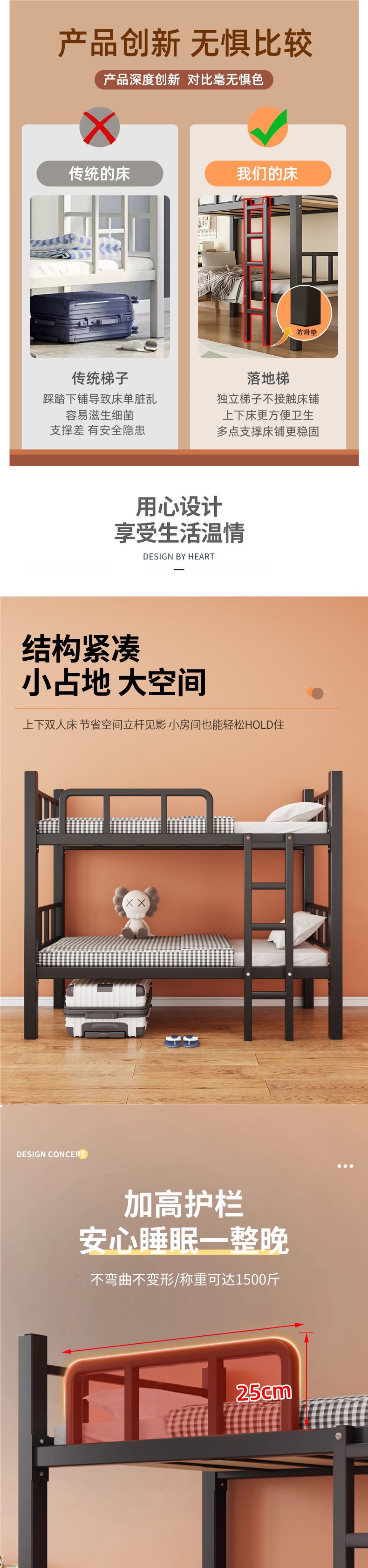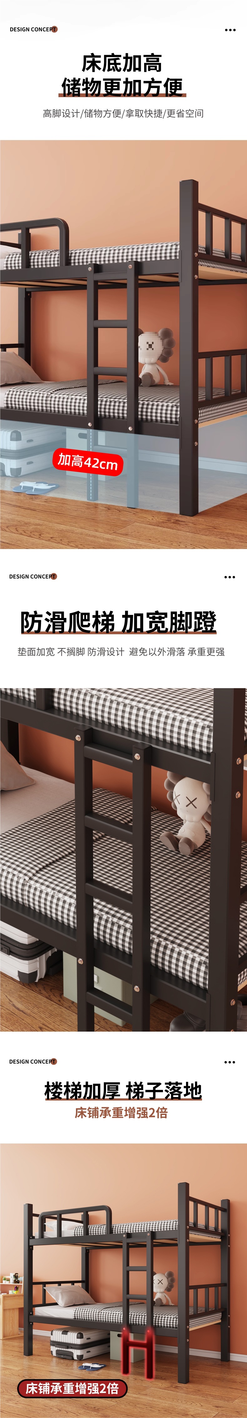 두꺼운 이층침대, 철제침대, 직원기숙사, 성인용 하이앤로우침대, 건설현장 선반침대, 학교용 더블 철제침대