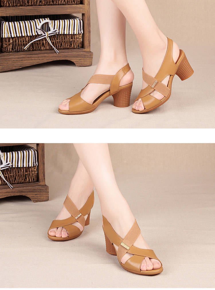 2025 여름 새로운 물고기 입 오픈 발가락 패션 로마 하이힐 샌들 여성용 두꺼운 뒤꿈치 중년 어머니 신발 국경 도매