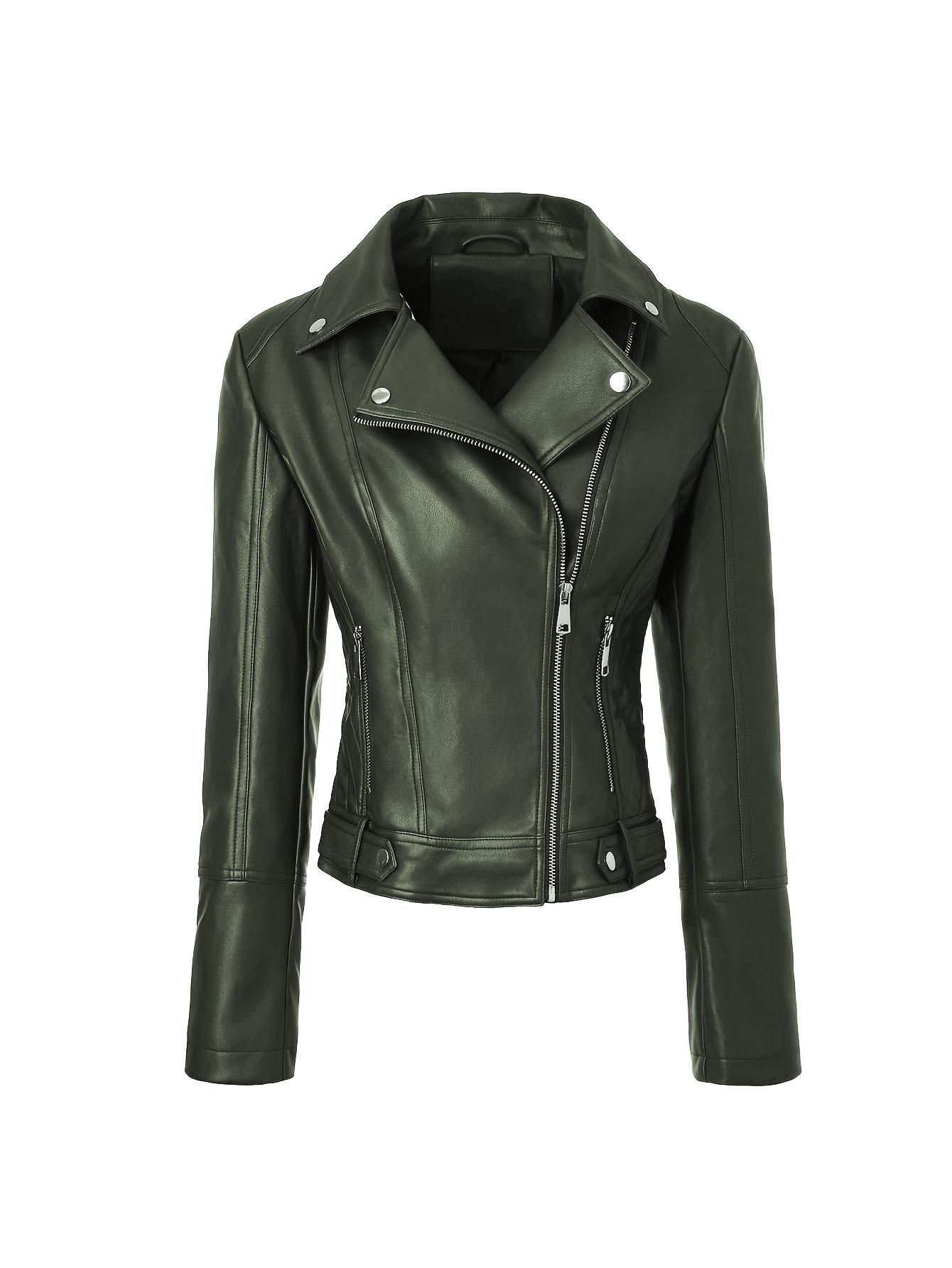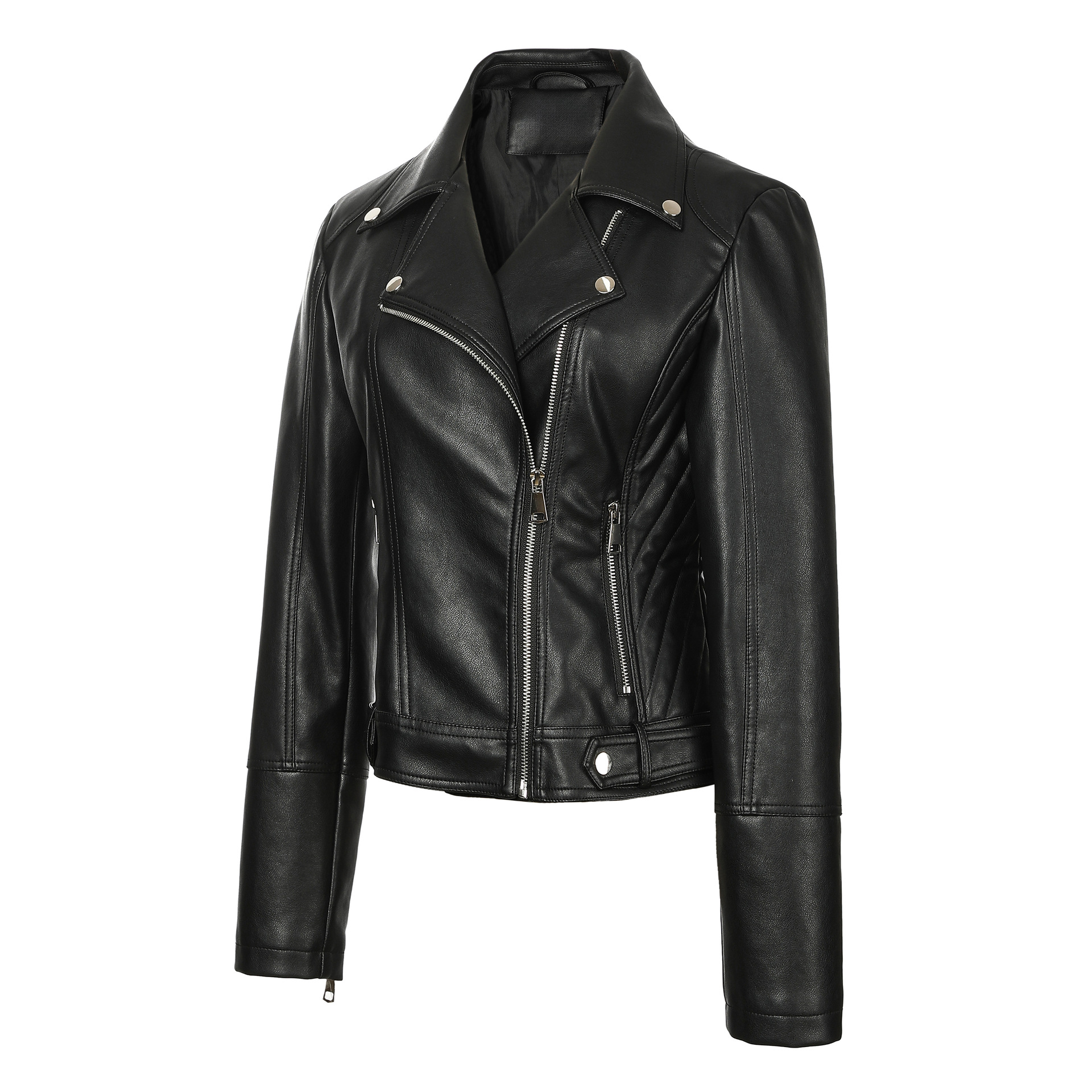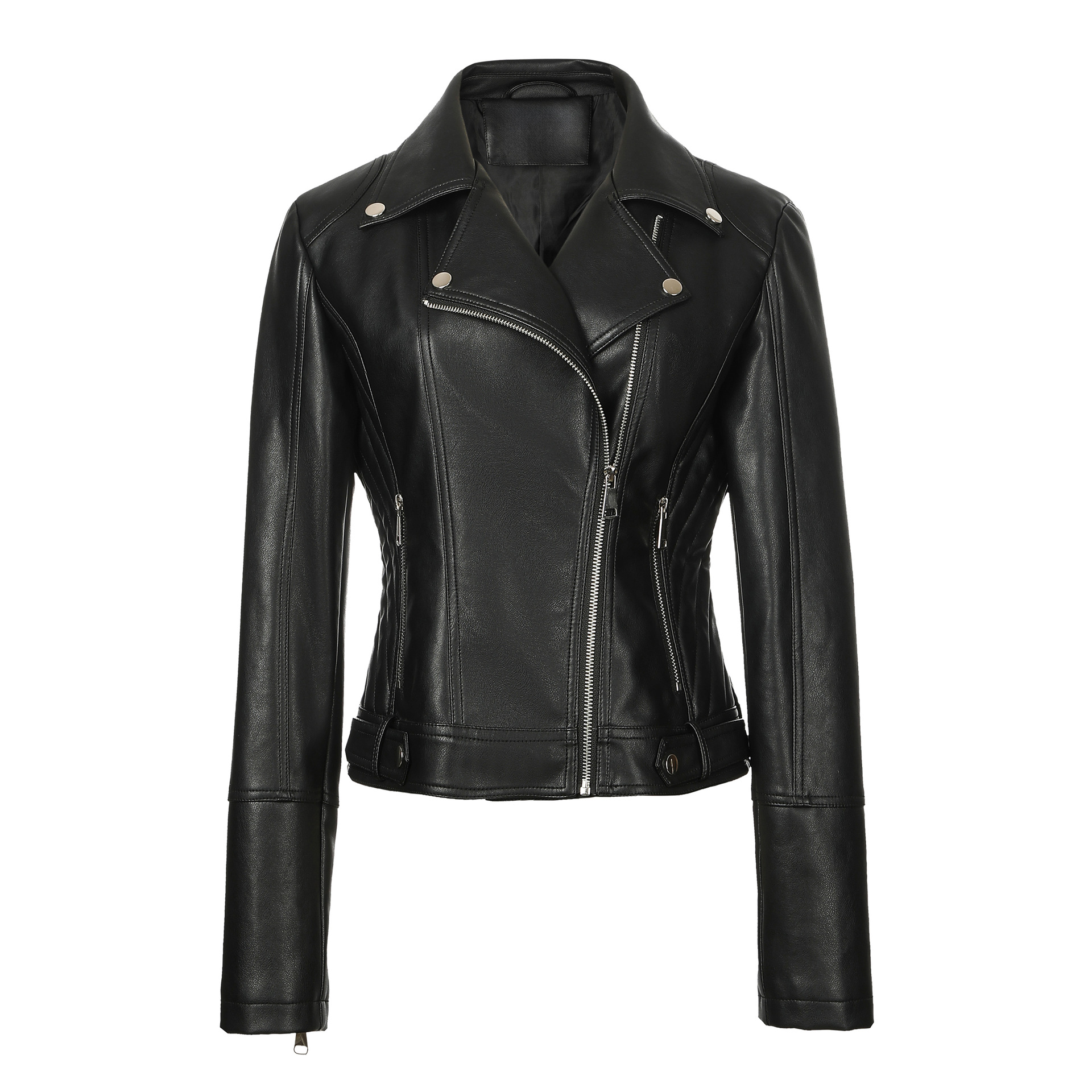 대외 무역 새로운 가을, 겨울 PU 가죽 오토바이 여성 라펠 재킷 멀티 지퍼 디자인 슬림 짧은 재킷