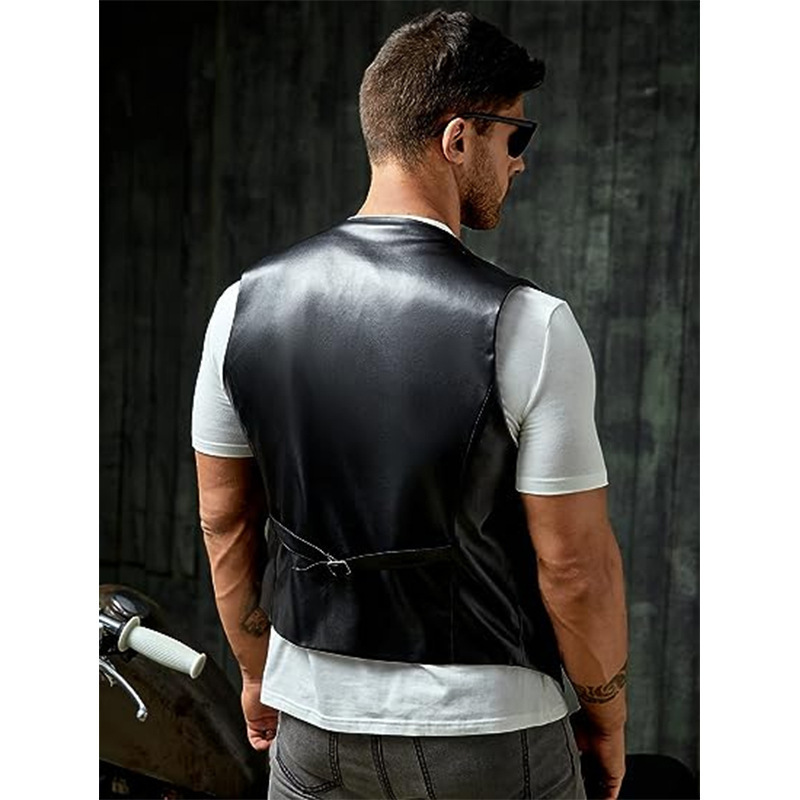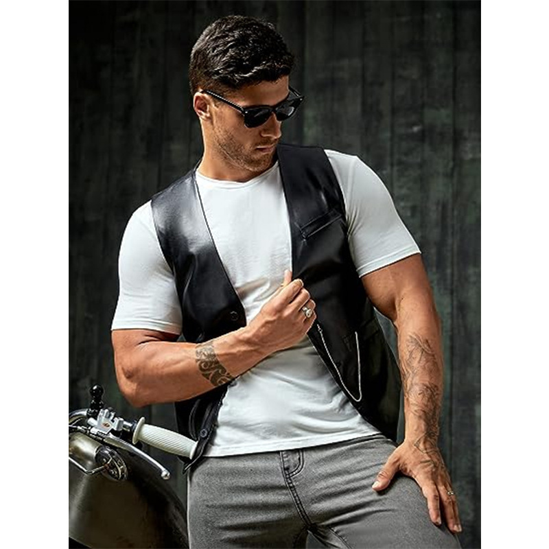 2025 새로운 국경 간 대외 무역 간결한 남성 PU 슬림 가죽 조끼 재킷 남성 조끼스토어 가기