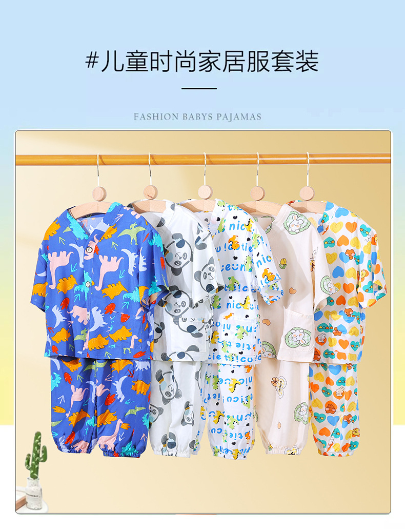 아동용 잠옷, 여름 남아용 반팔 바지, 여아용 가디건, 아이스 실크 슈트, 아동용 가정복, 아동용 에어컨 의류스토어 가기