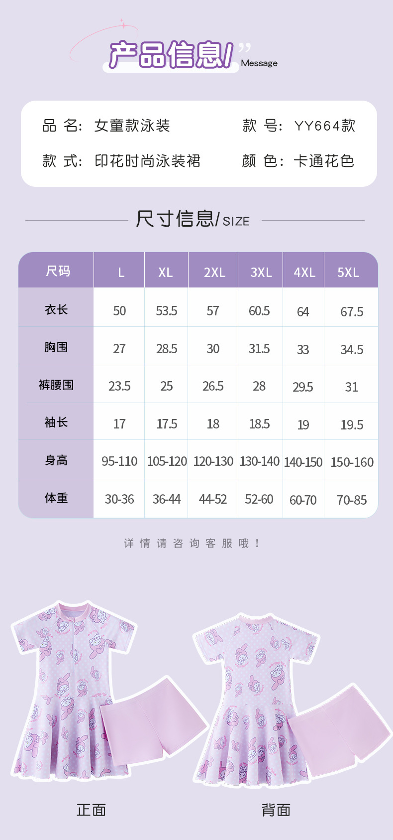 • 5XL (권장 키 150-160cm, 몸무게 35-42.5kg ) 탈착식 가슴 패드