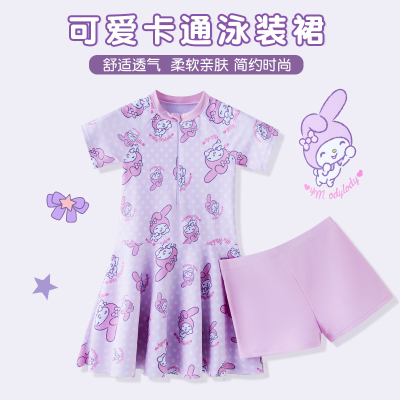귀여운 신선한 스타일 어린이 수영복 4-12 세 소녀 한국 스타일 수영복 편안한 반소매 지퍼 수영복스토어 가기