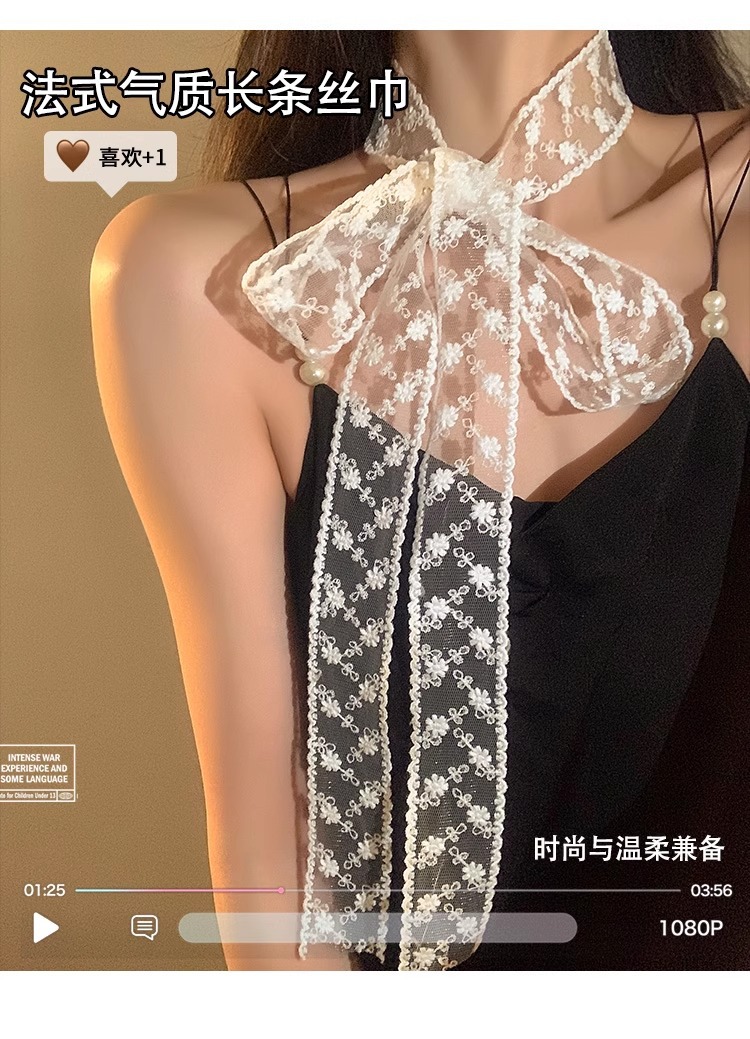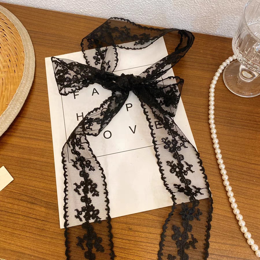 프랑스 스타일 얇은 좁은 긴 실크 스카프 여성용 목 빛 럭셔리 하이 엔드 스카프 새로운 봄과 여름 장식 레이스 리본 벨트