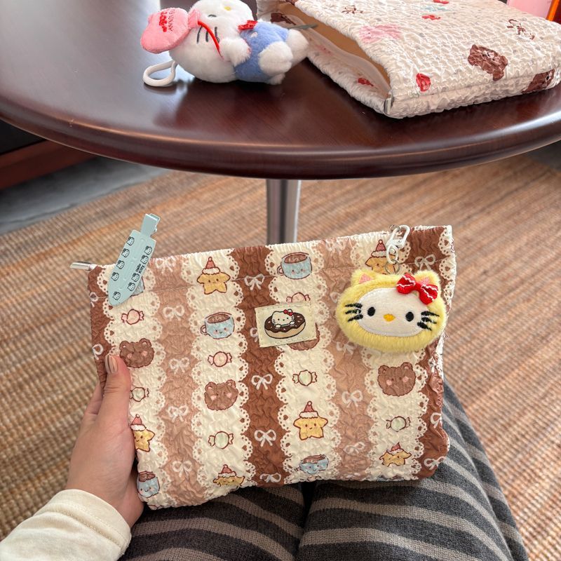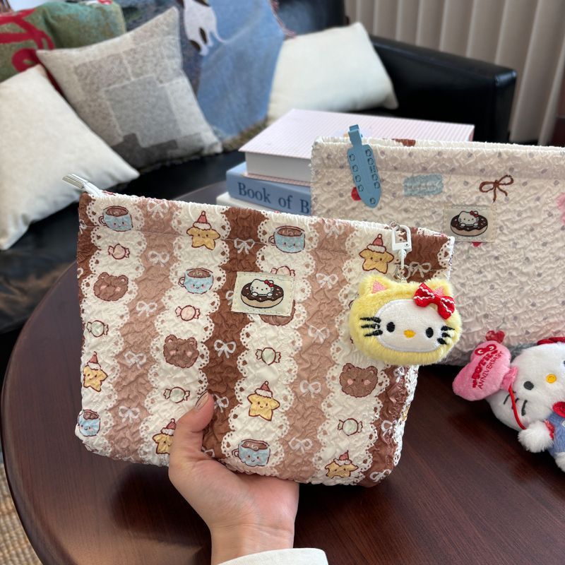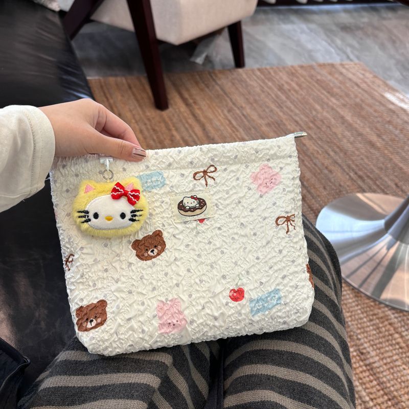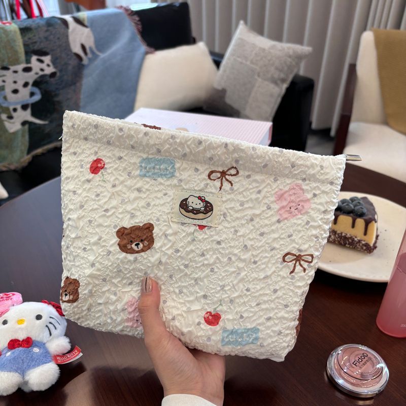 귀여운 곰 메이크업 가방 신선한 꽃 클러치 가방 2025 새로운 휴대용 대용량 저장 가방