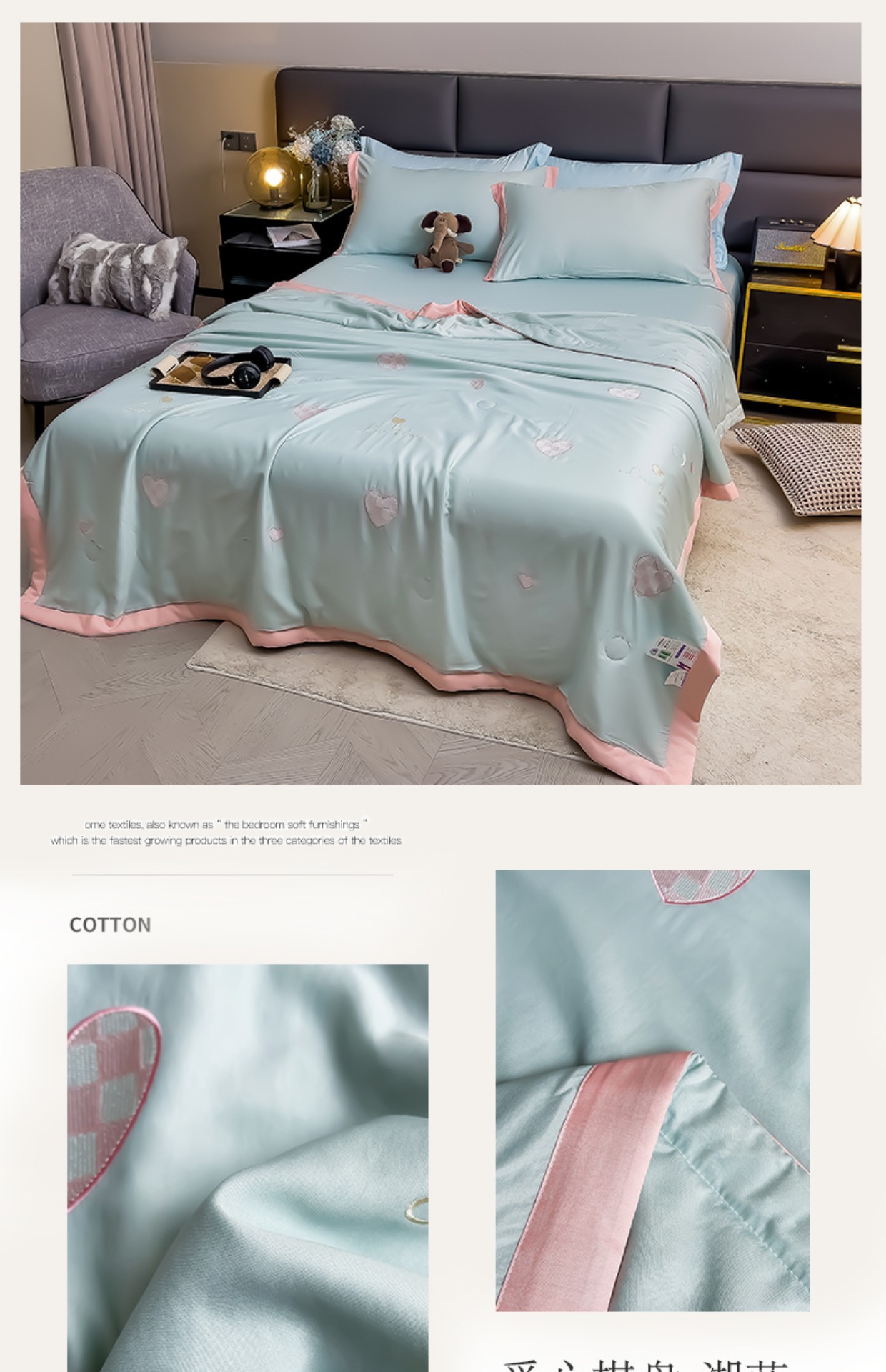 클래스 A Lyocell Tencel 여름 퀼트 여름 쿨 퀼트 4 피스 아이스 실크 에어 컨디셔닝 이불 머신 세탁 가능한 모달 어린이 얇은 이불