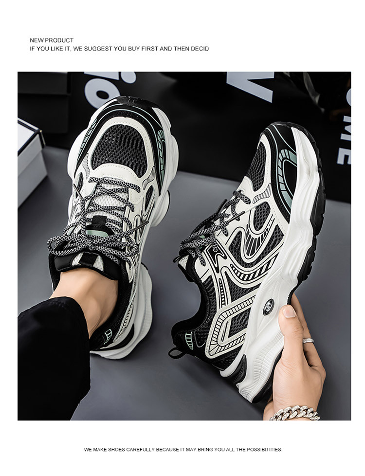 여름 남성 신발 새로운 통기성 메쉬 신발 남성 운동화 트렌디 올매치 두꺼운 밑창 캐주얼 러닝 아빠 신발스토어 가기