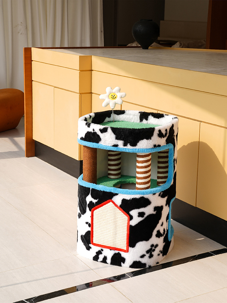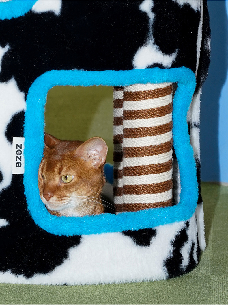 Zeze 사계절 농장 빌라 클라이밍 프레임 더블 레이어 고양이 둥지 사계절 범용 고양이 클라이밍 프레임 홈 고양이 스크래치 보드 일체형