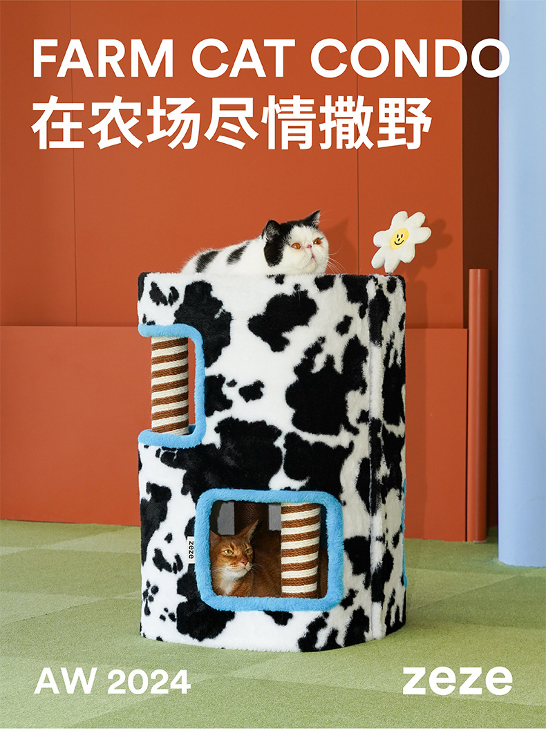 Zeze 사계절 농장 빌라 클라이밍 프레임 더블 레이어 고양이 둥지 사계절 범용 고양이 클라이밍 프레임 홈 고양이 스크래치 보드 일체형스토어 가기