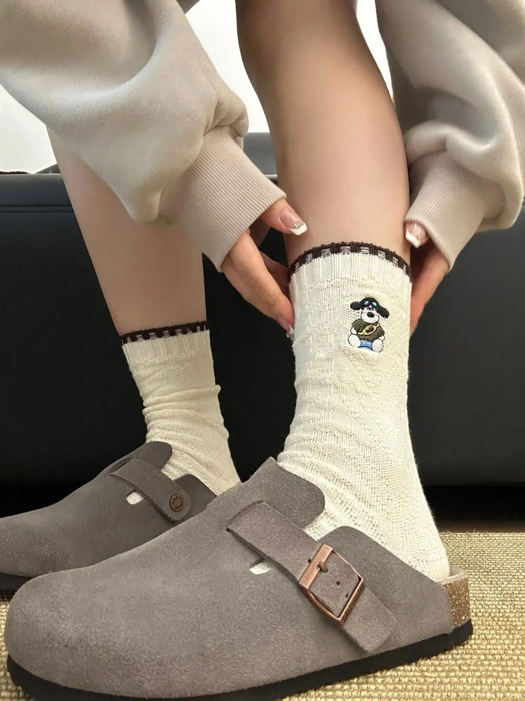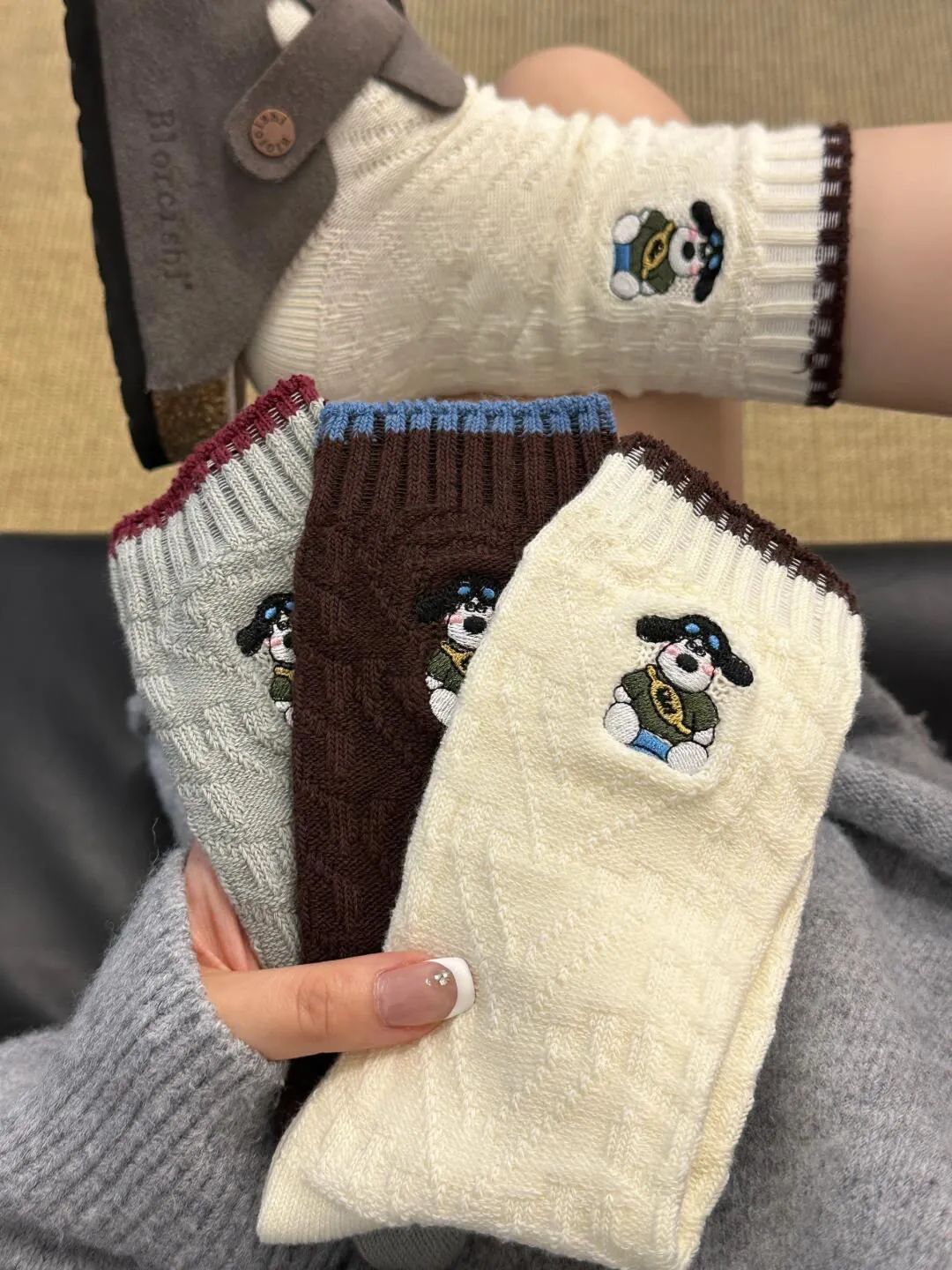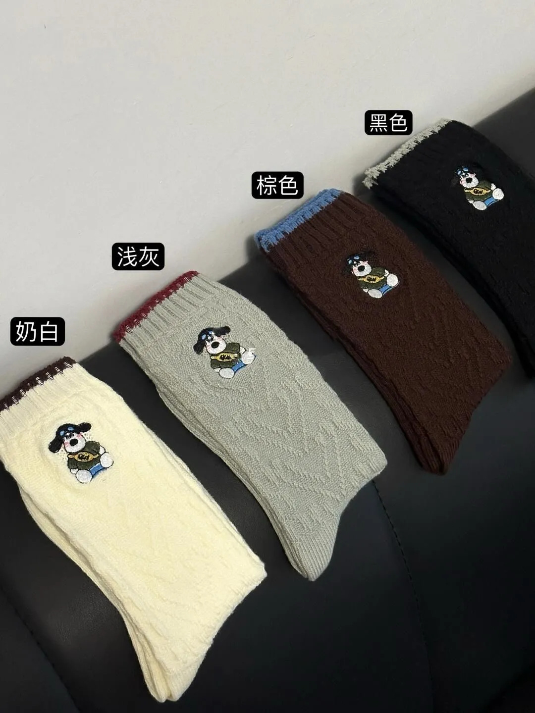 양말 여성 한국 스타일 트렌디 한 귀여운 만화 강아지 중간 양말 가을과 겨울 빈티지 대비 컬러 스크류 스택 양말스토어 가기