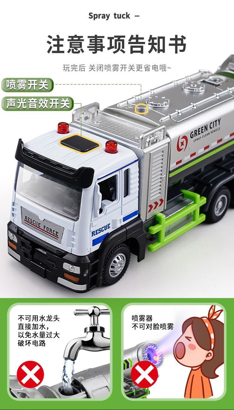 • 합금 시뮬레이션 스프링클러 트럭 [물/조명 및 음향 효과를 뿌릴 수 있음]