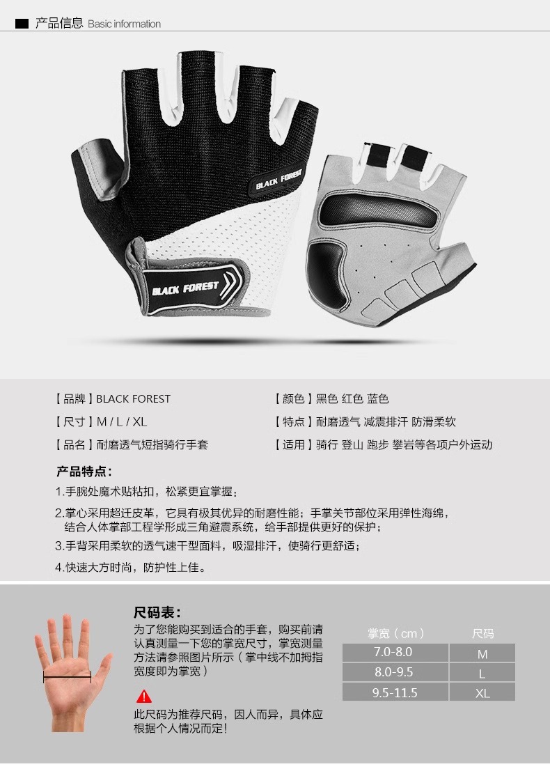 사이클링 반 손가락 장갑 미끄럼 방지 내마모성 충격 흡수 두꺼운 장갑 커플 스타일 스포츠 피트니스 반 손가락 장갑