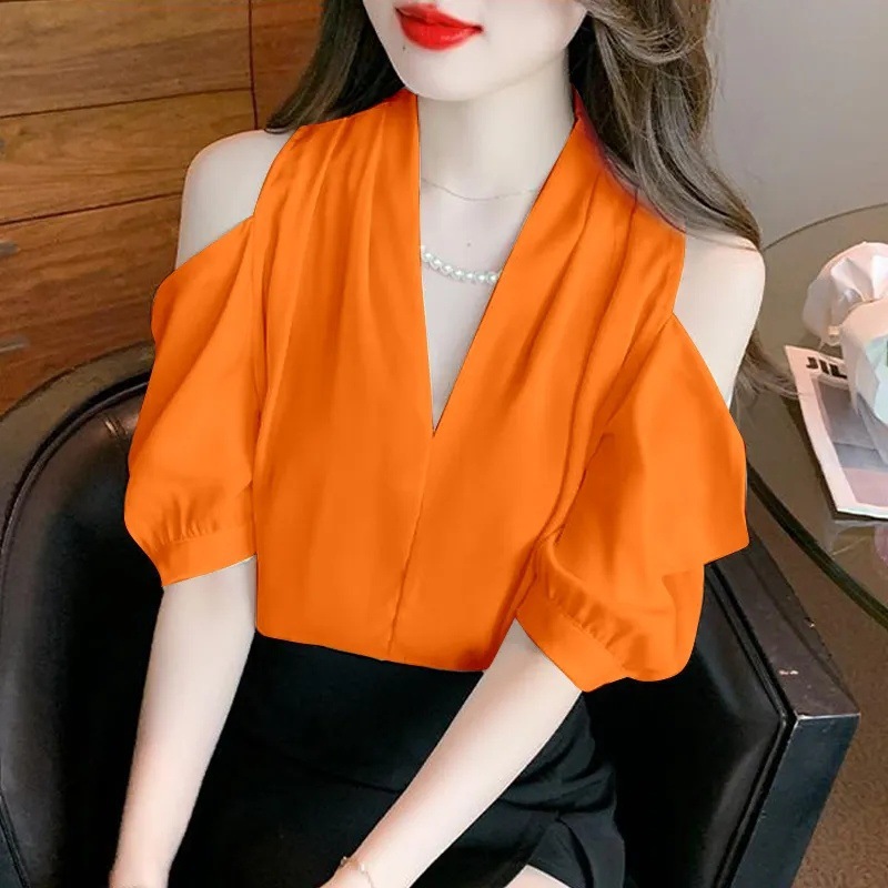 여성용 쉬폰 셔츠 어깨 짧은 소매 2025 새로운 여름 디자인 틈새 슬림 우아한 셔츠 탑스토어 가기