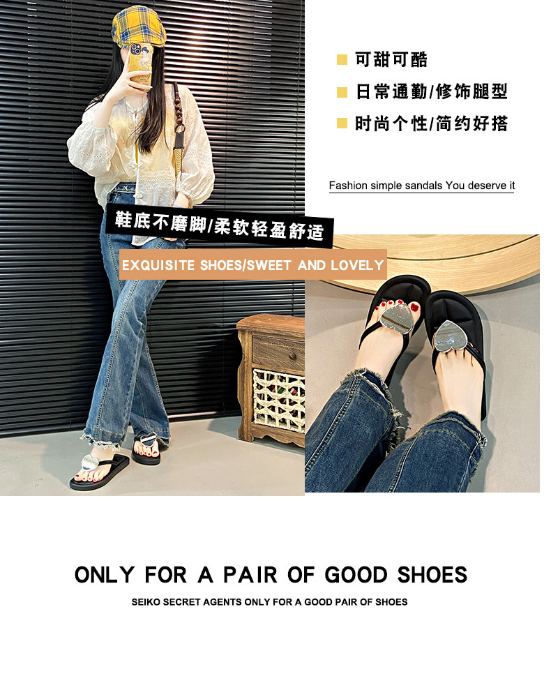 새로운 여성의 봄과 여름 플립 플롭 복숭아 모양의 간단한 올 매치 야외 비치 신발 여성 패션 매칭 샌들