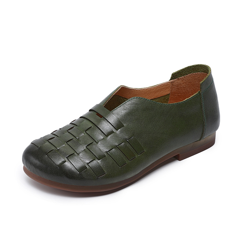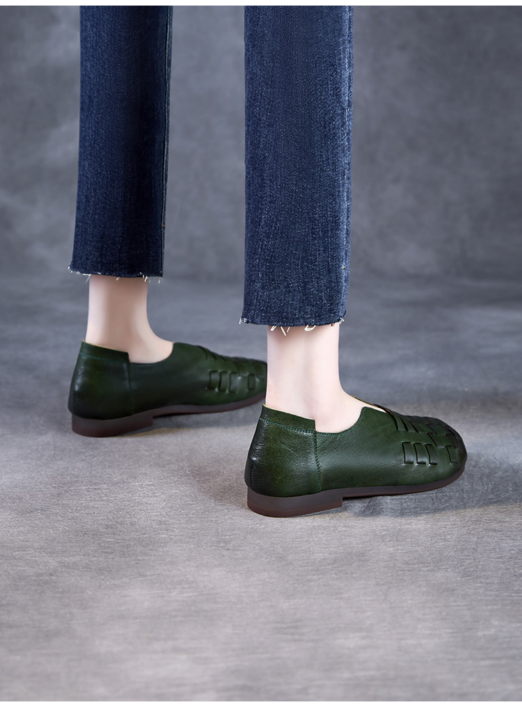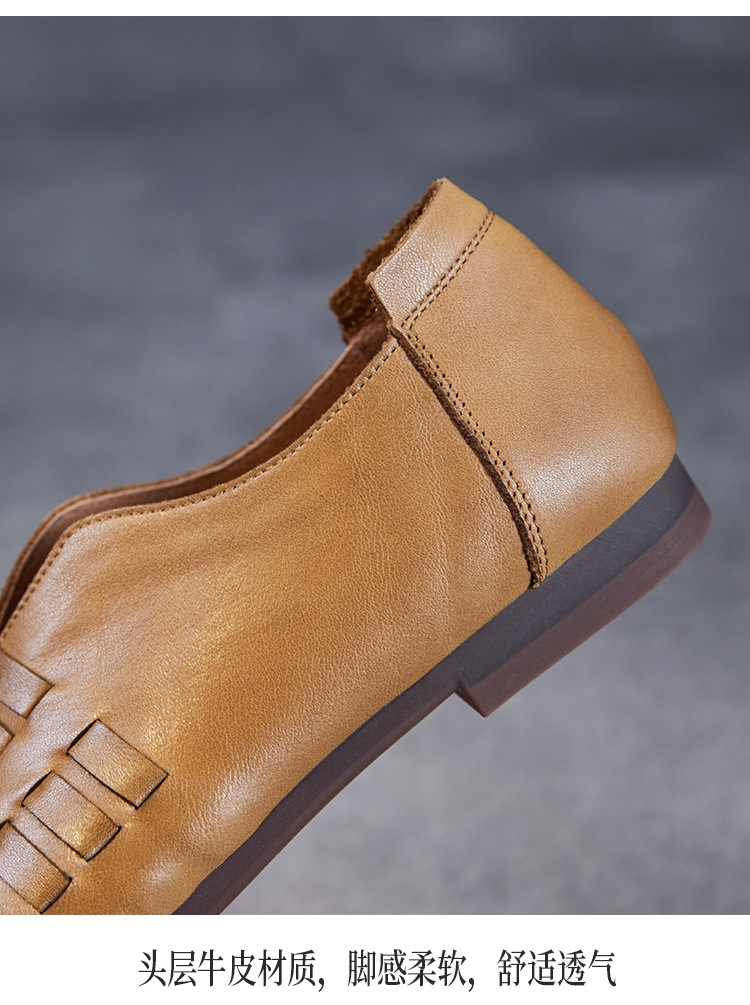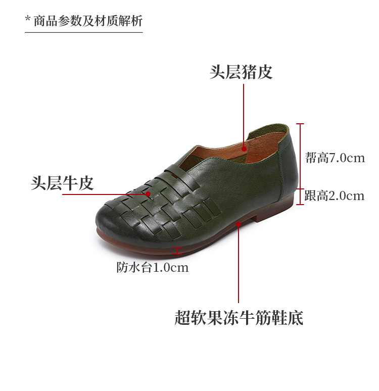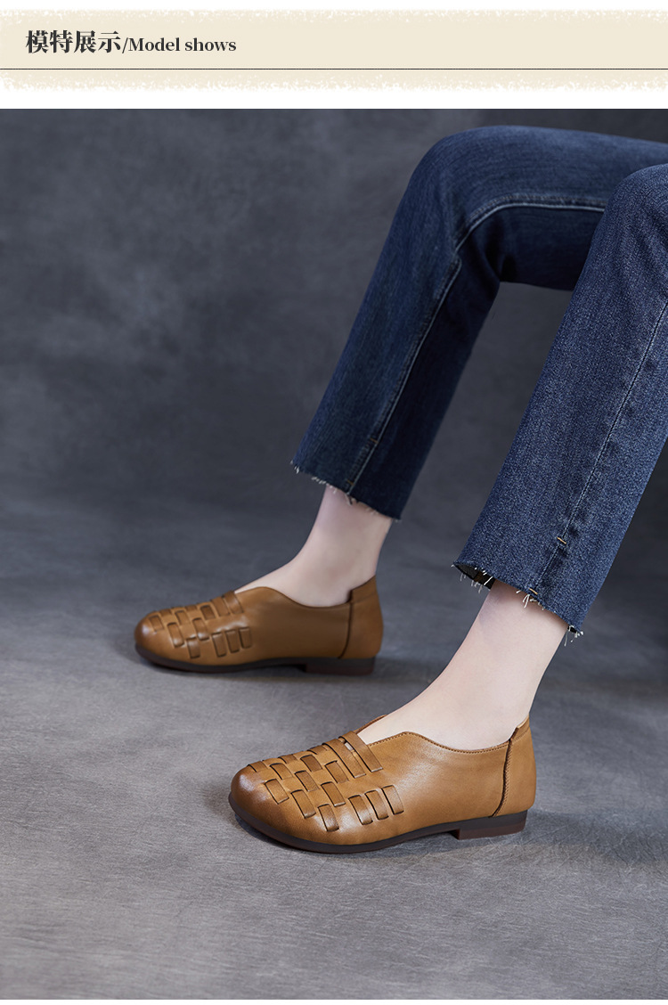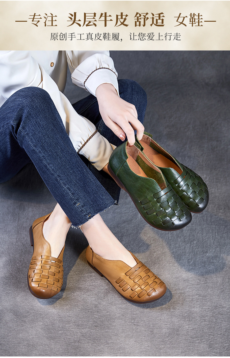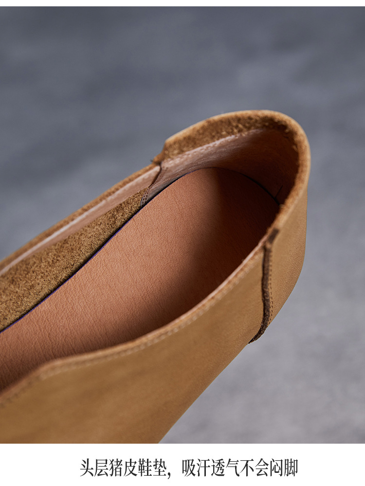 25 봄과 여름 가죽 부드러운 바닥 얕은 입 싱글 레이어 신발 여성 통기성 틈새 디자인 센스 짠 예술적 레트로 슬립 온 신발스토어 가기