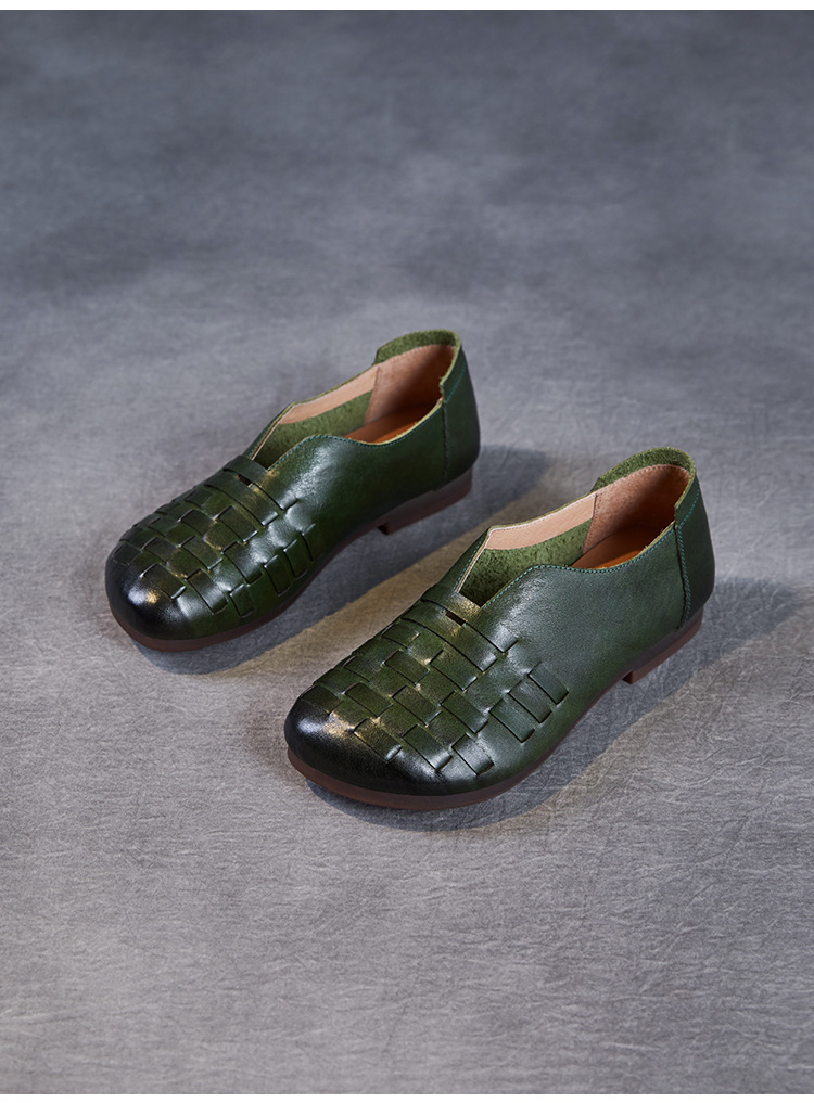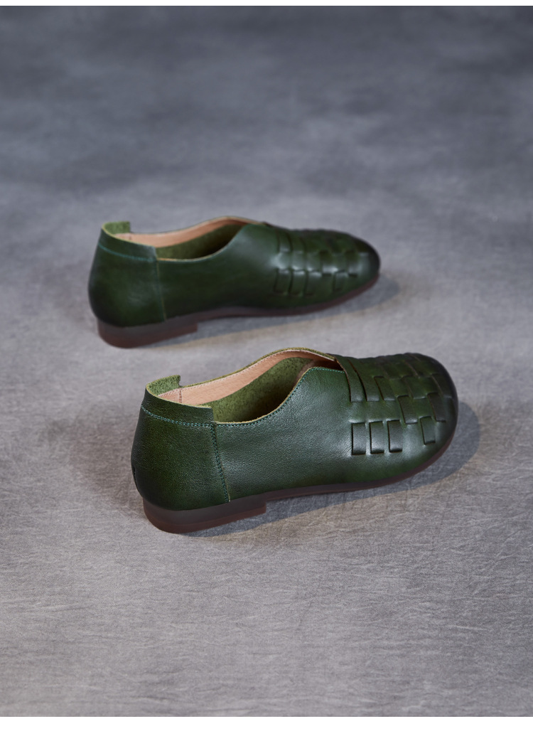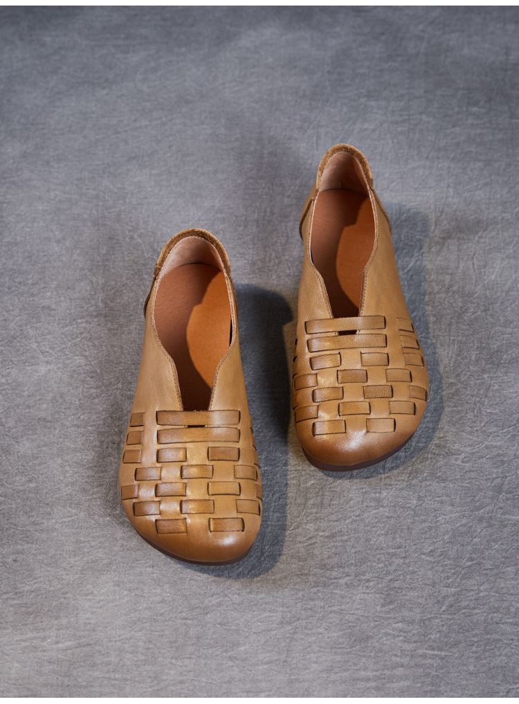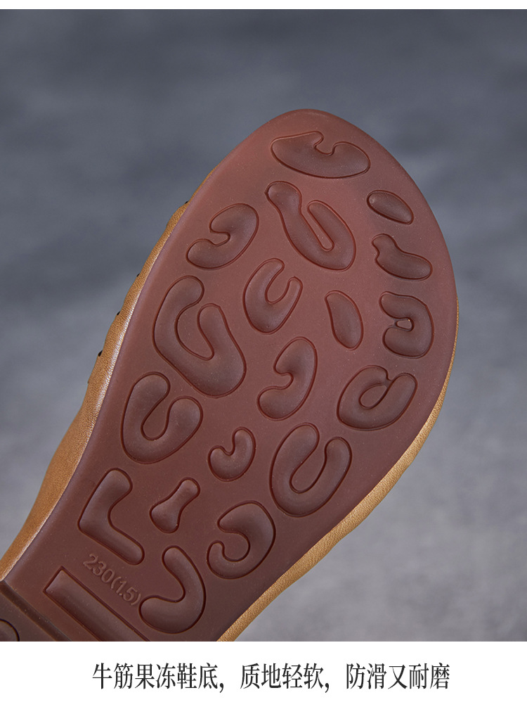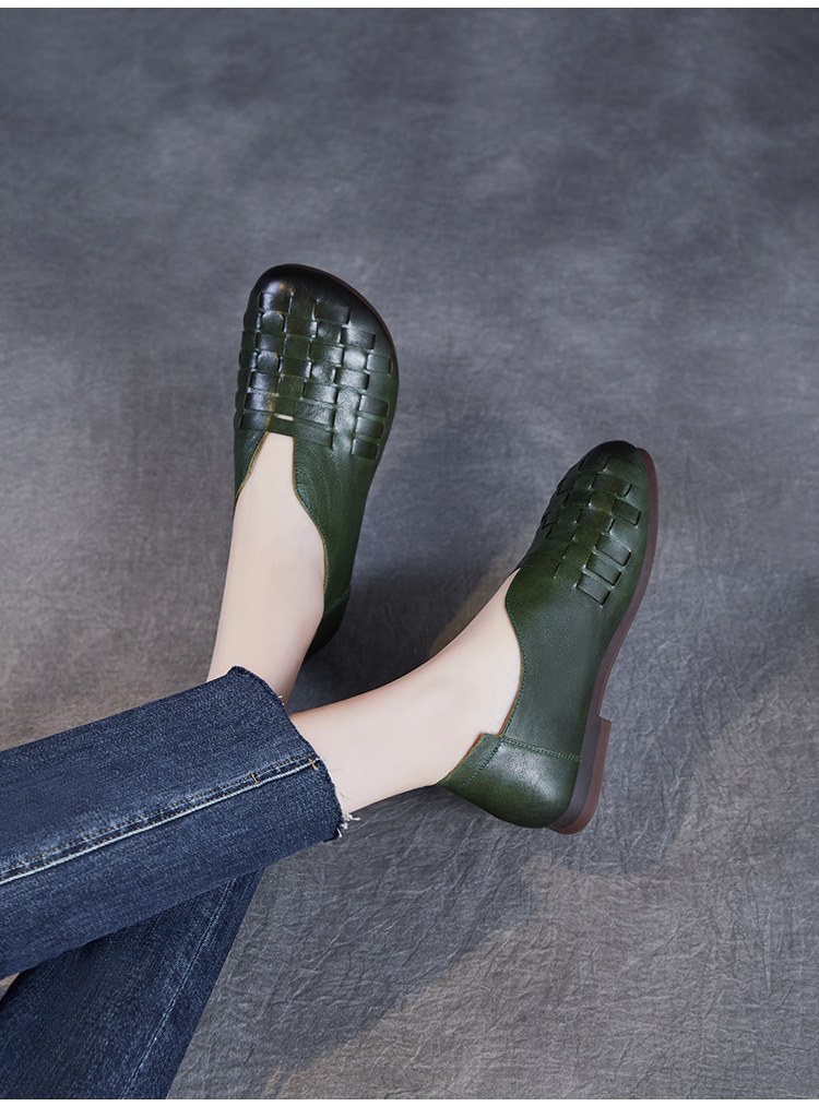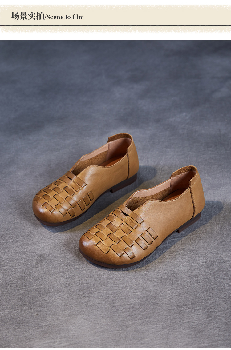 25 봄과 여름 가죽 부드러운 바닥 얕은 입 싱글 레이어 신발 여성 통기성 틈새 디자인 센스 짠 예술적 레트로 슬립 온 신발스토어 가기